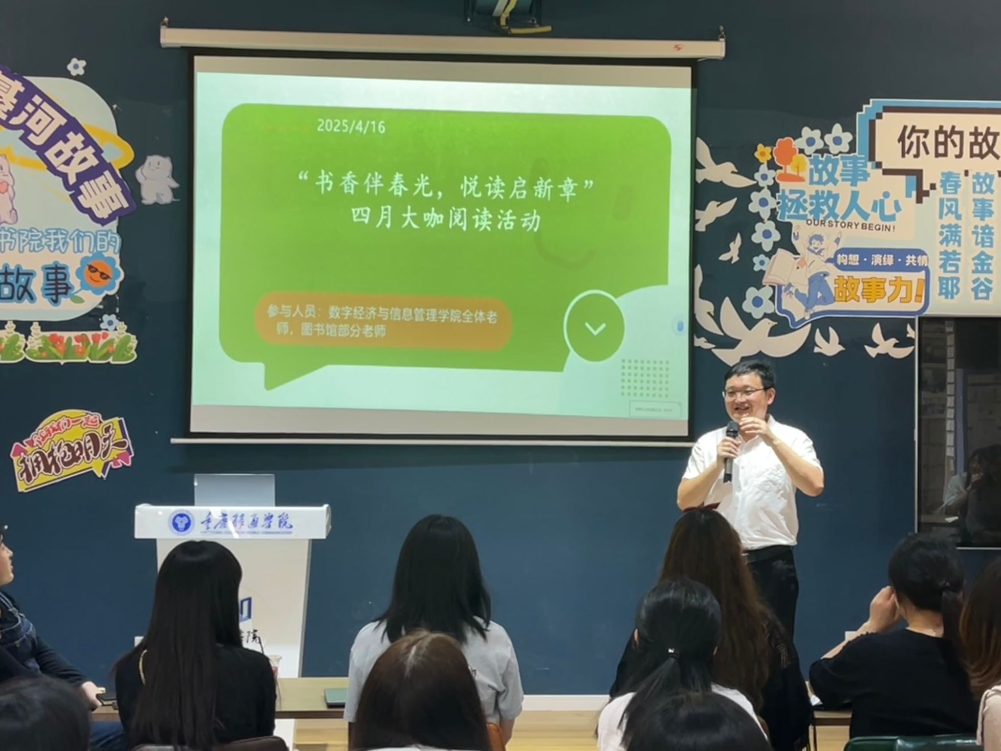 为营造书香育人氛围,推动教师共读经典、启迪教学智慧,4月16日在綦河书院东篱故事茶馆内,数字经济与信息管理学院联动图书馆举办“书香伴春光,悦读启新章”四月大咖阅读分享会。活动以“阅读·分享·成长”为主线,通过教师领读、趣味互动、深度对话等环节,激发教师阅读热情,共探学科建设与教育创新路径。本次读书活动由供应链管理教研室李若玲老师主持,数信学院全体教师、图书馆部分老师参加。