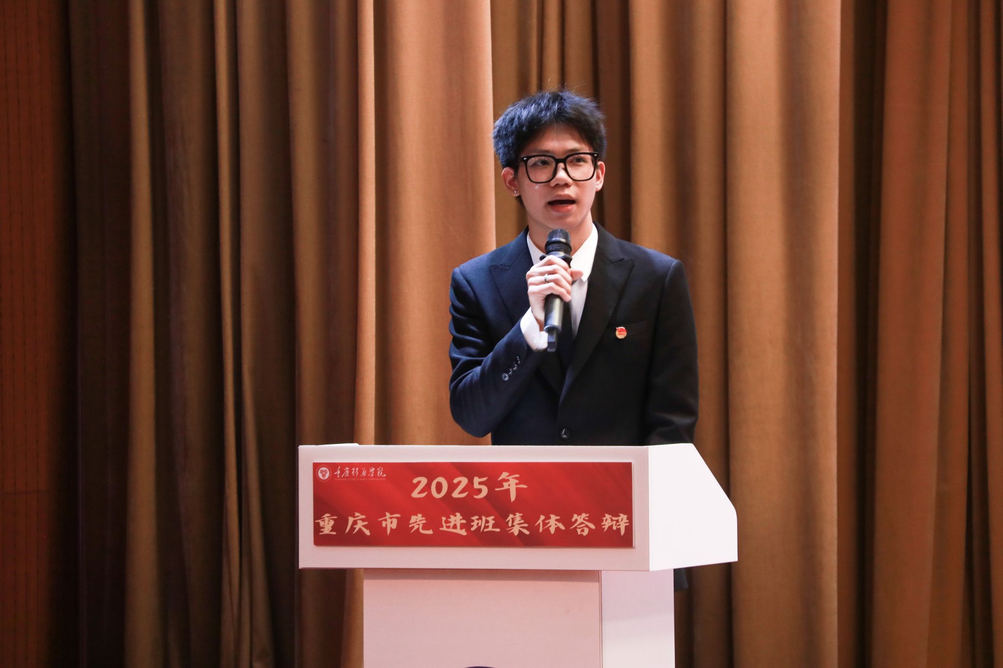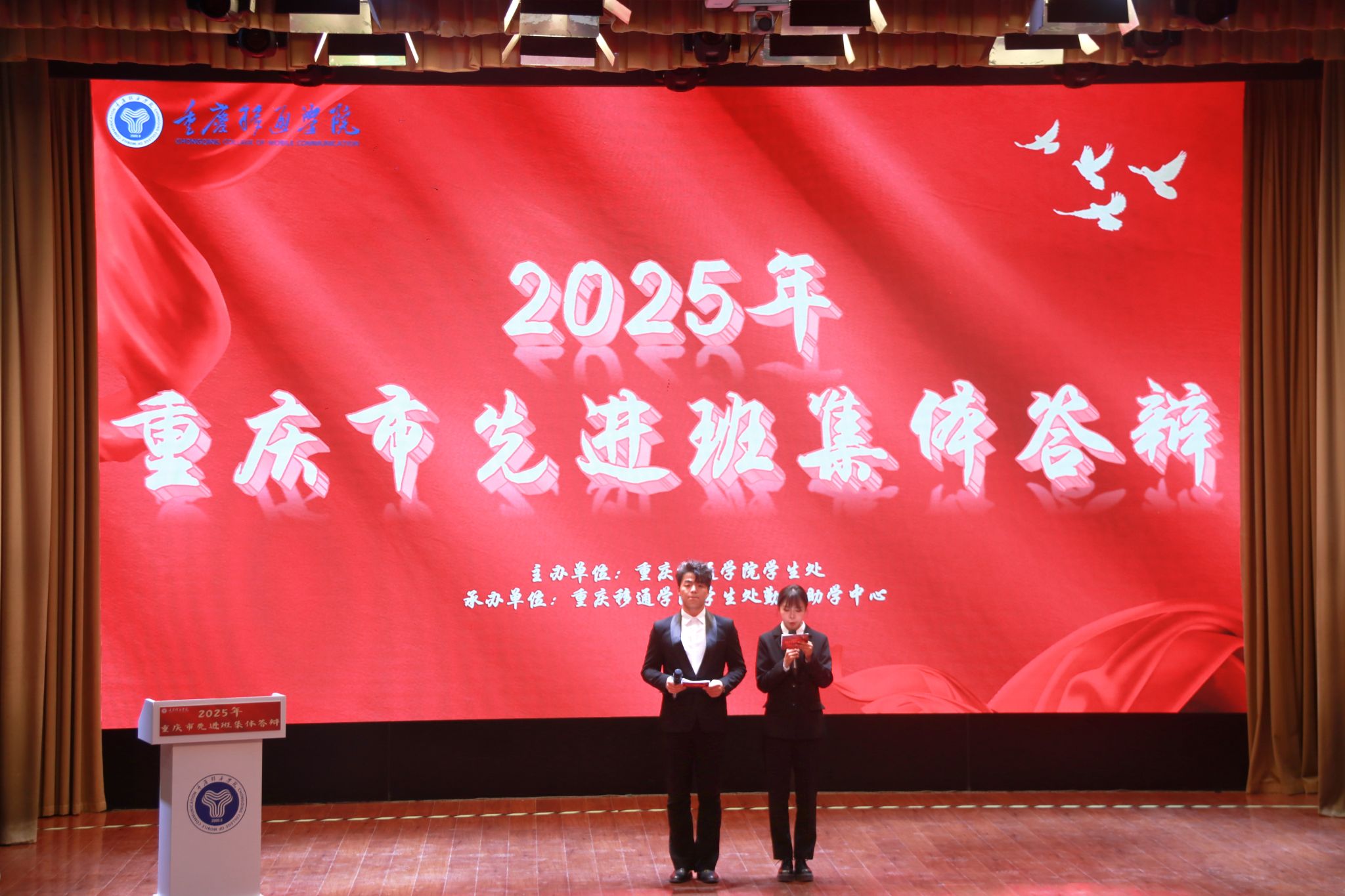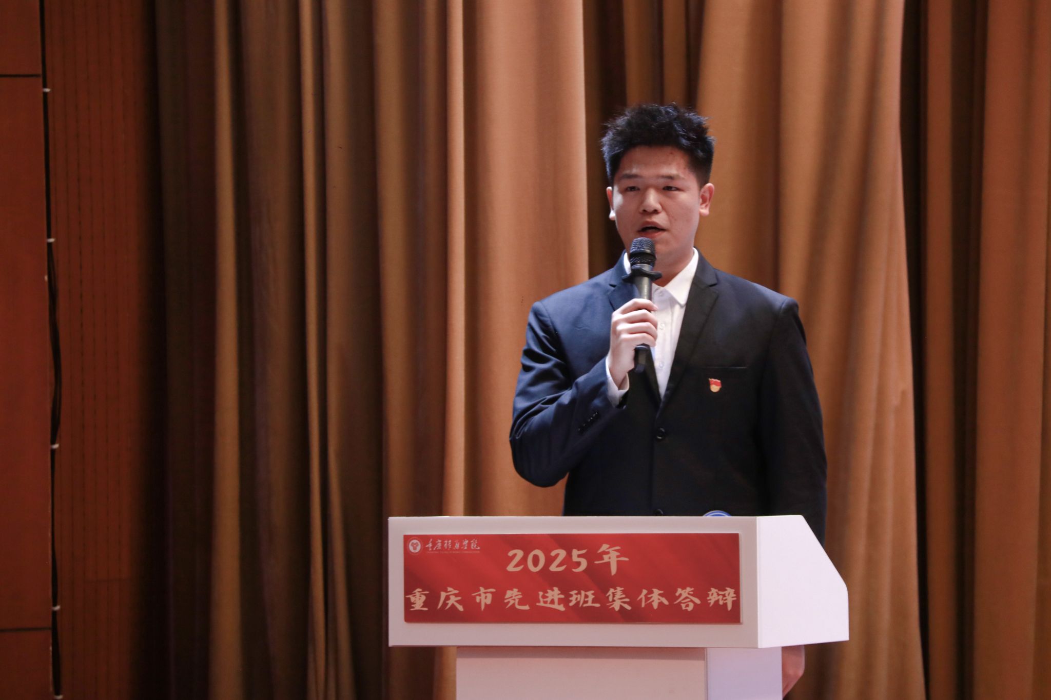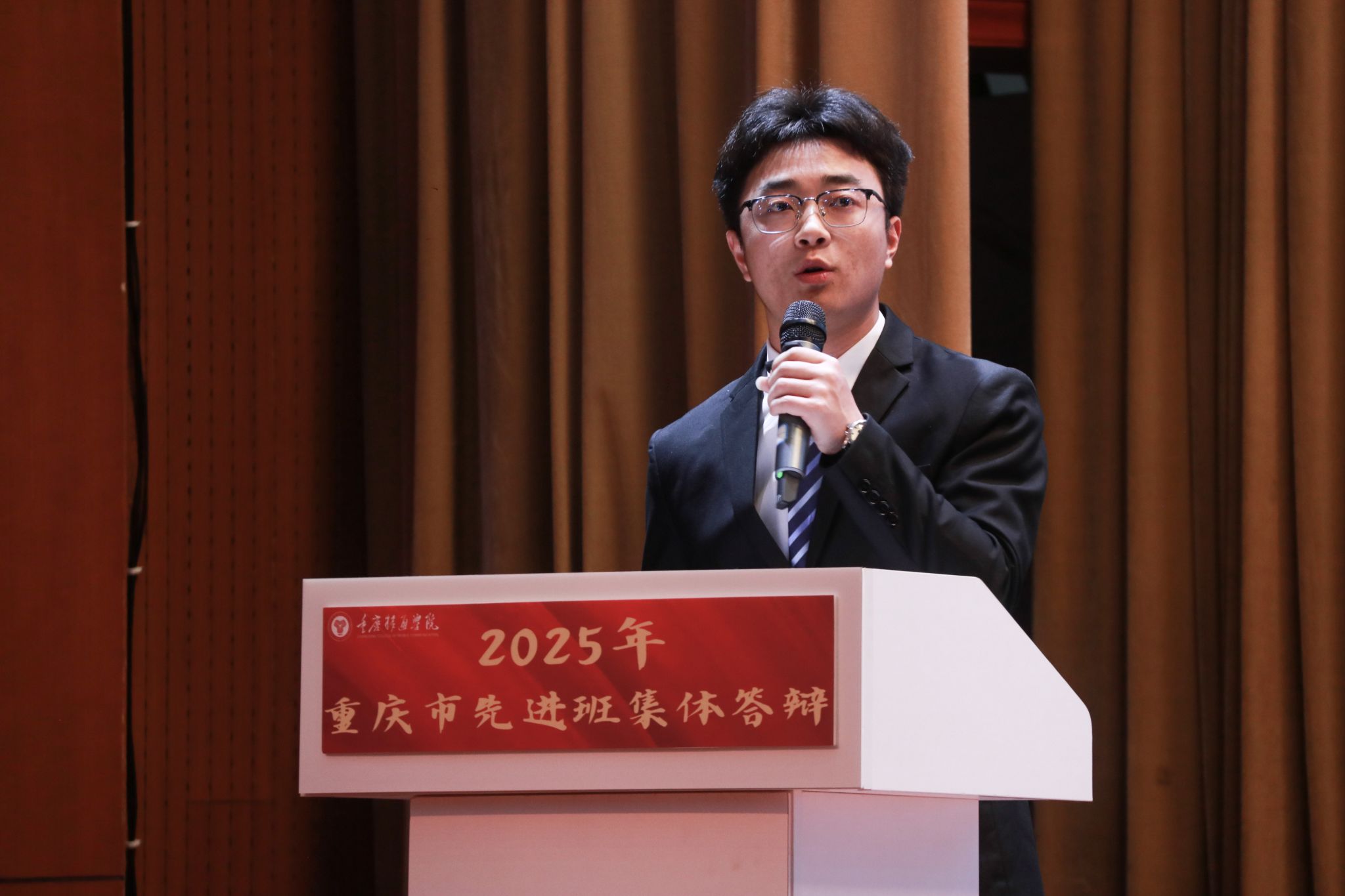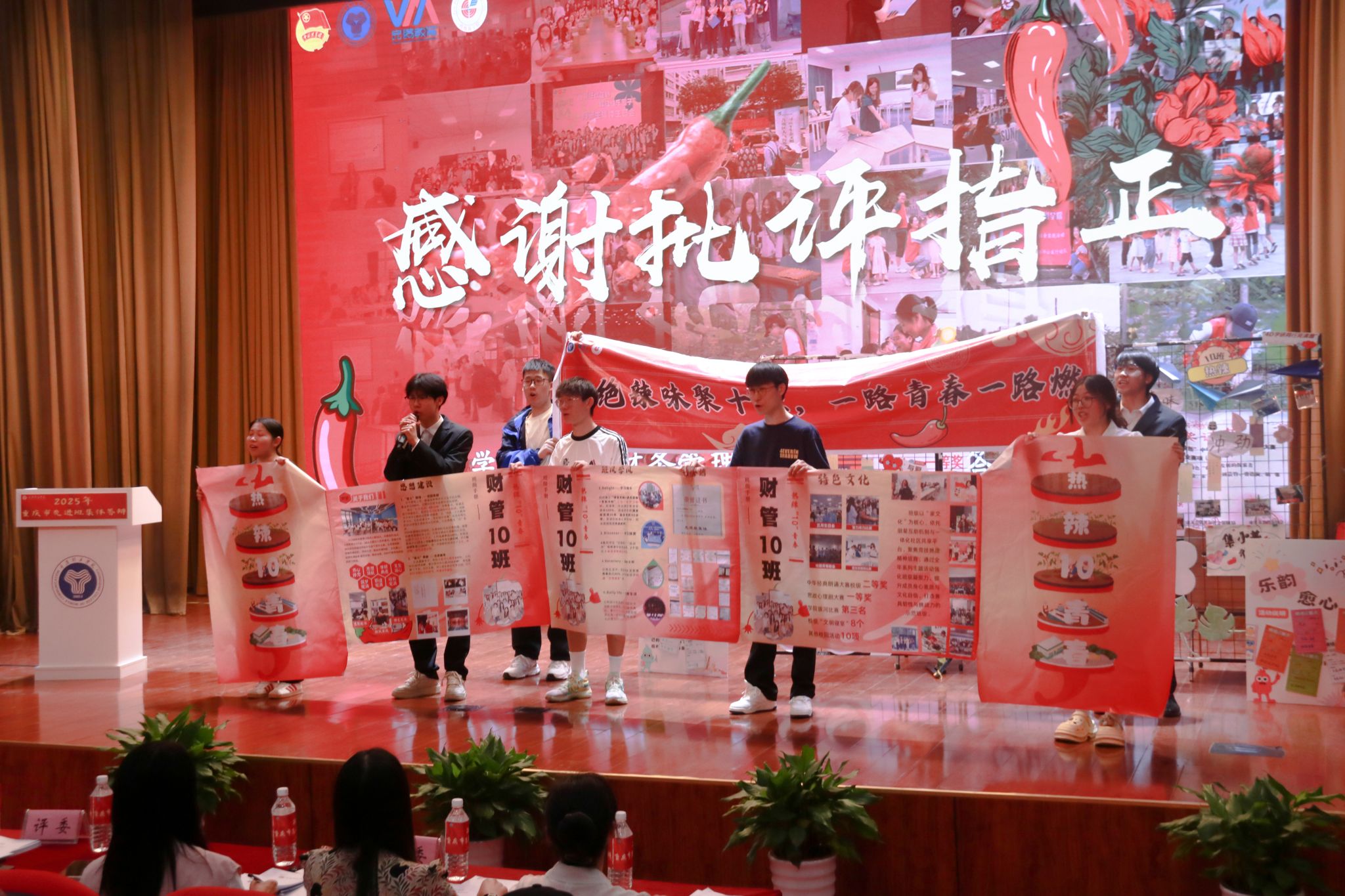 风好正是扬帆时,奋楫逐浪向未来。为践行社会主义核心价值观,培树先进典型,凝聚榜样力量,我校于4月16日在下里巴人剧场举办2025年重庆市高校学生先进班集体答辩会。经过班级申报、学院选拔推荐,共有10个优秀班级脱颖而出,参与本次答辩。莅临现场的评委老师包括学生处、教务处、财务处、学生处、团委、书院部、艺术教育中心、竞技体育中心等相关职能部门教师代表、纪检监察专员廖春花老师。