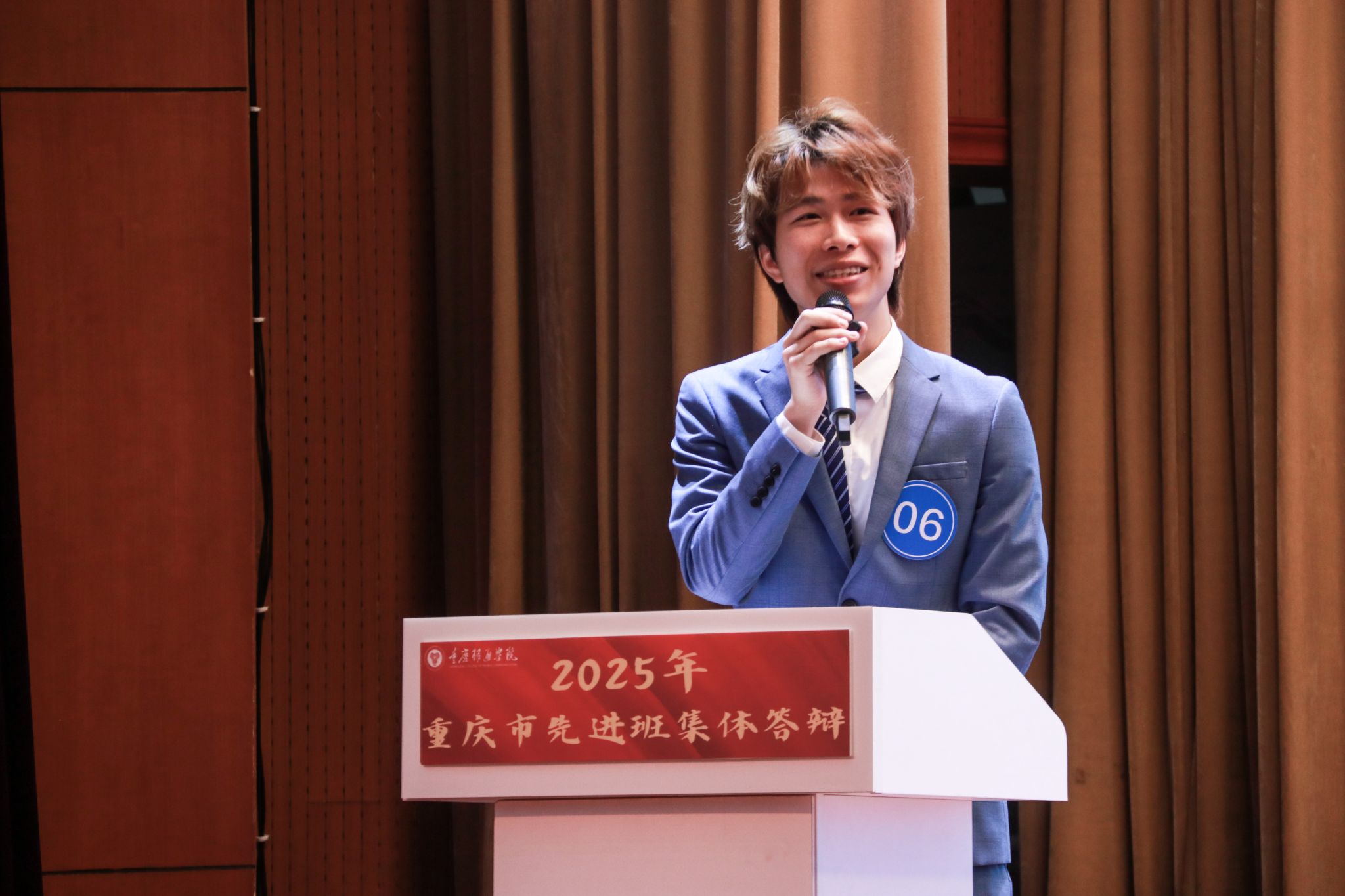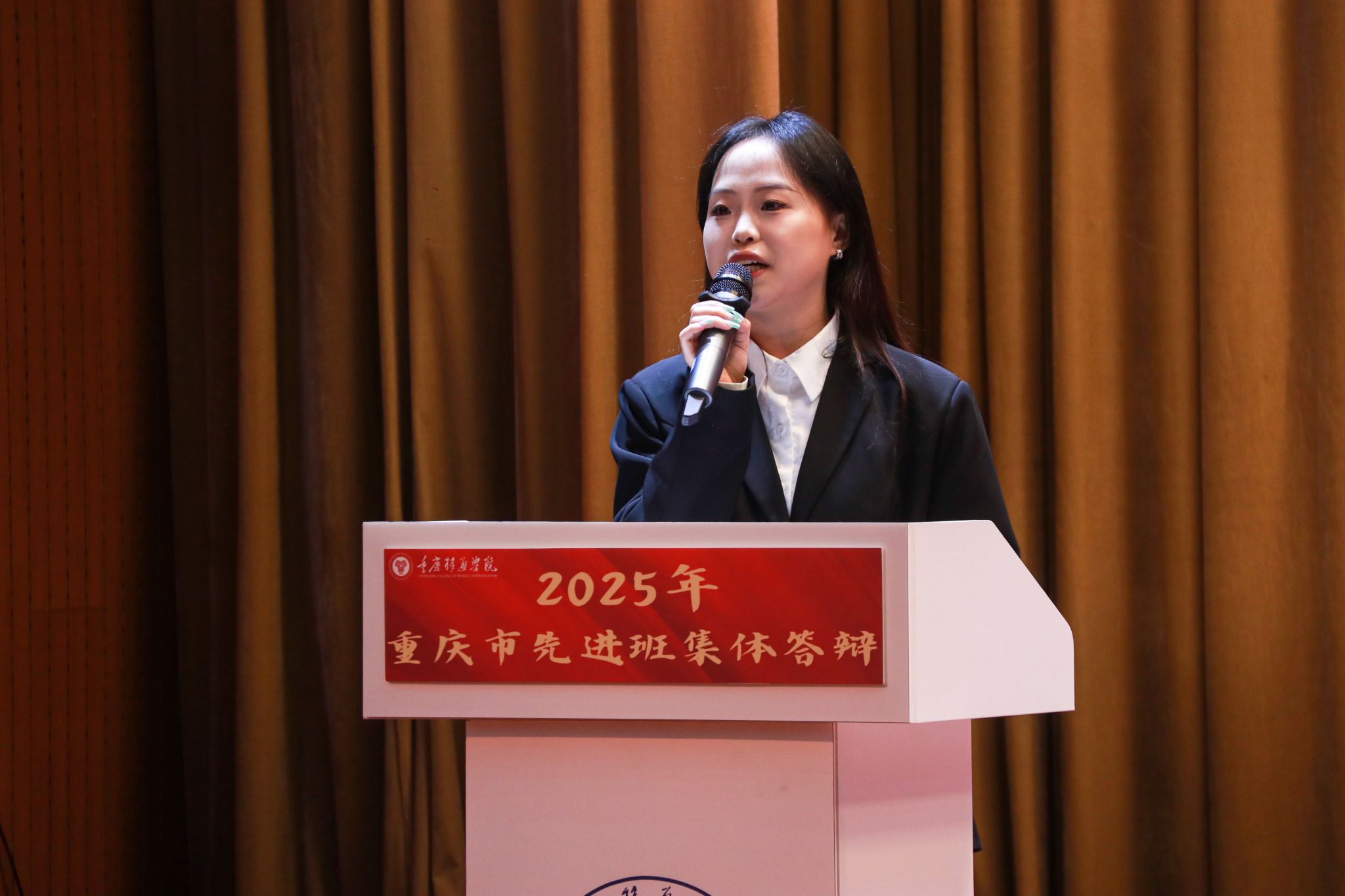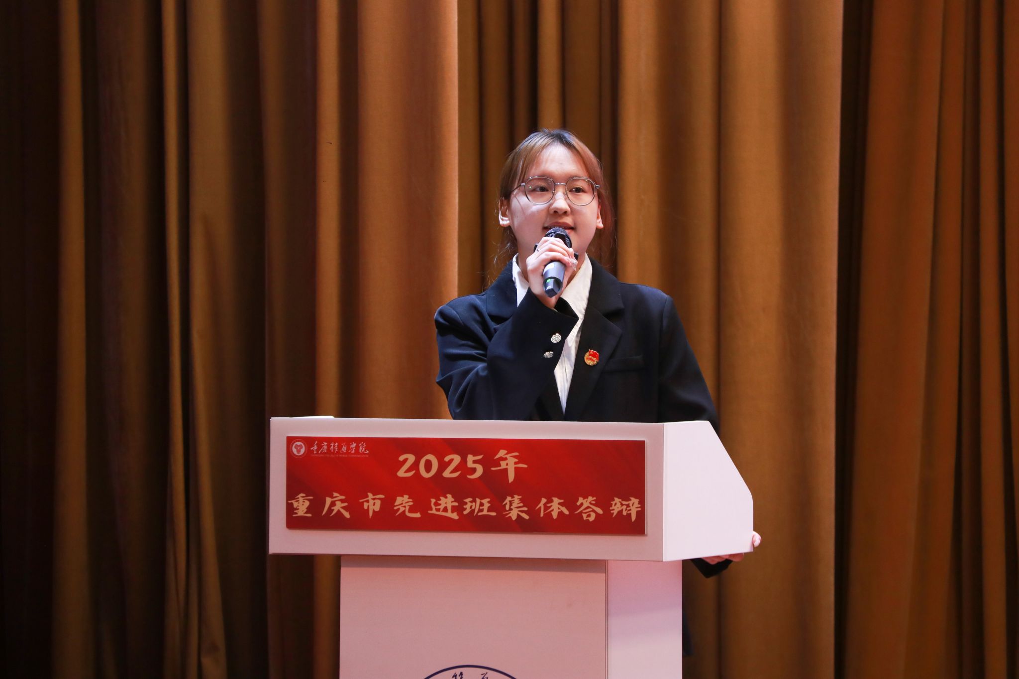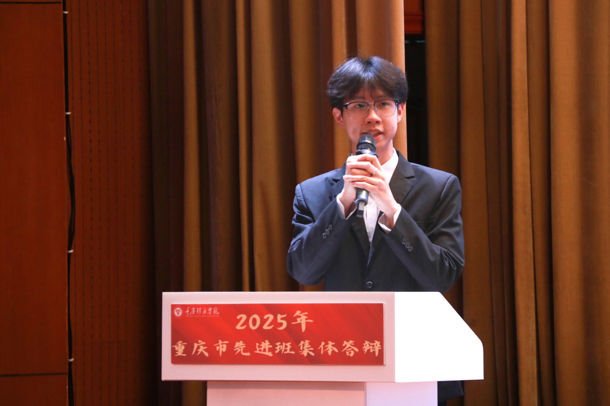 风好正是扬帆时,奋楫逐浪向未来。为践行社会主义核心价值观,培树先进典型,凝聚榜样力量,我校于4月16日在下里巴人剧场举办2025年重庆市高校学生先进班集体答辩会。经过班级申报、学院选拔推荐,共有10个优秀班级脱颖而出,参与本次答辩。莅临现场的评委老师包括学生处、教务处、财务处、学生处、团委、书院部、艺术教育中心、竞技体育中心等相关职能部门教师代表、纪检监察专员廖春花老师。
