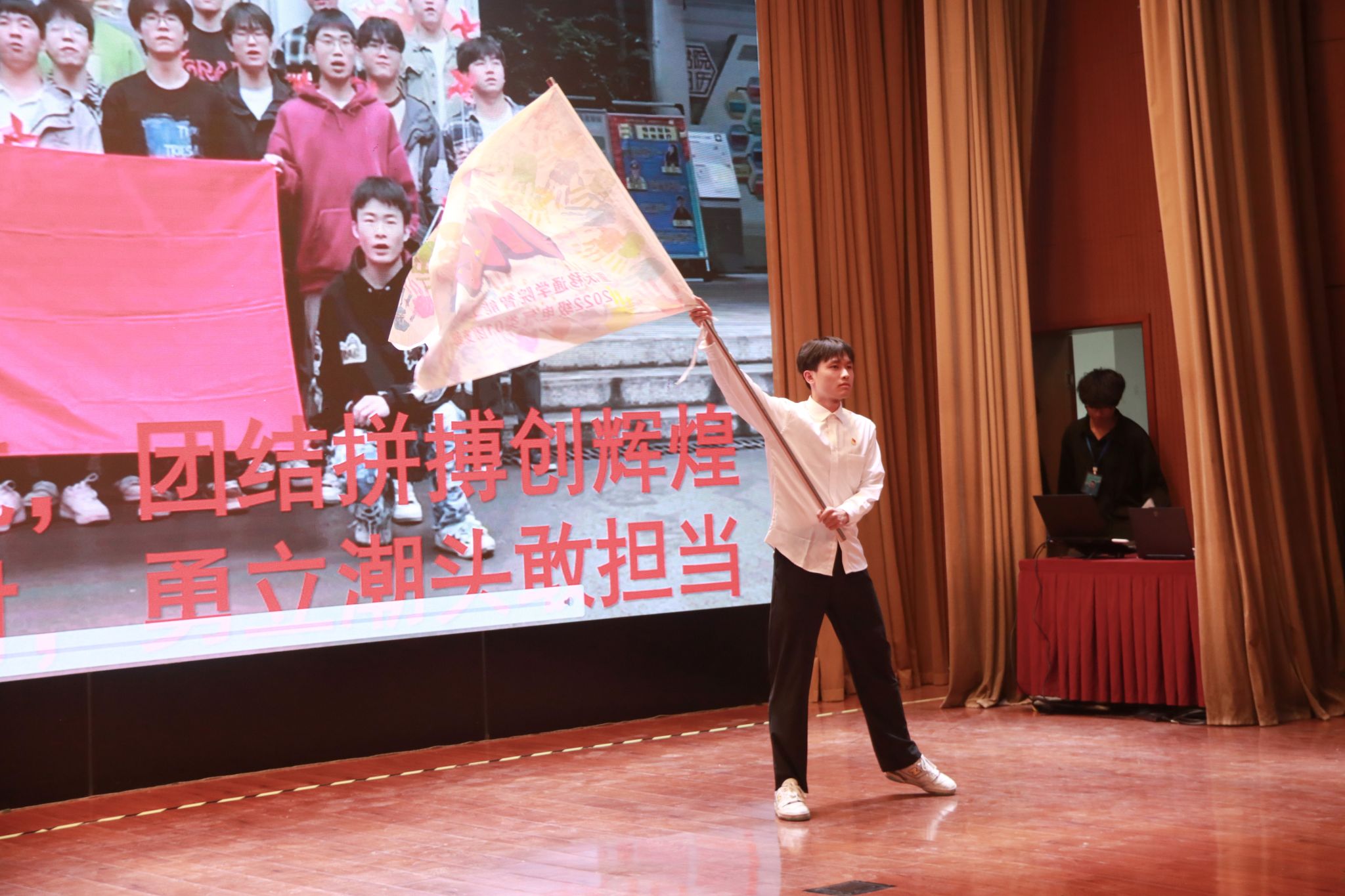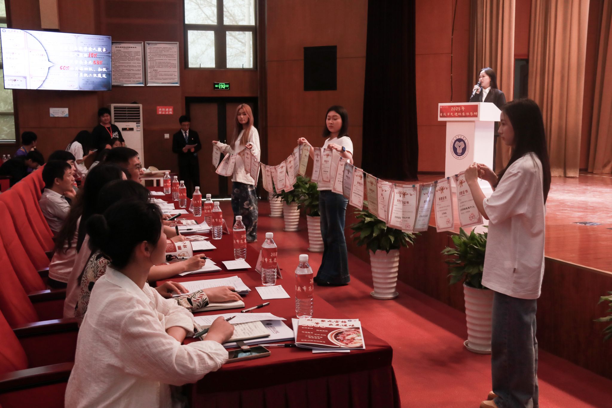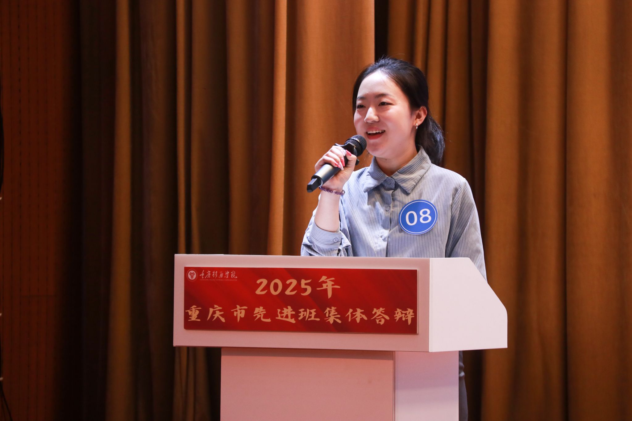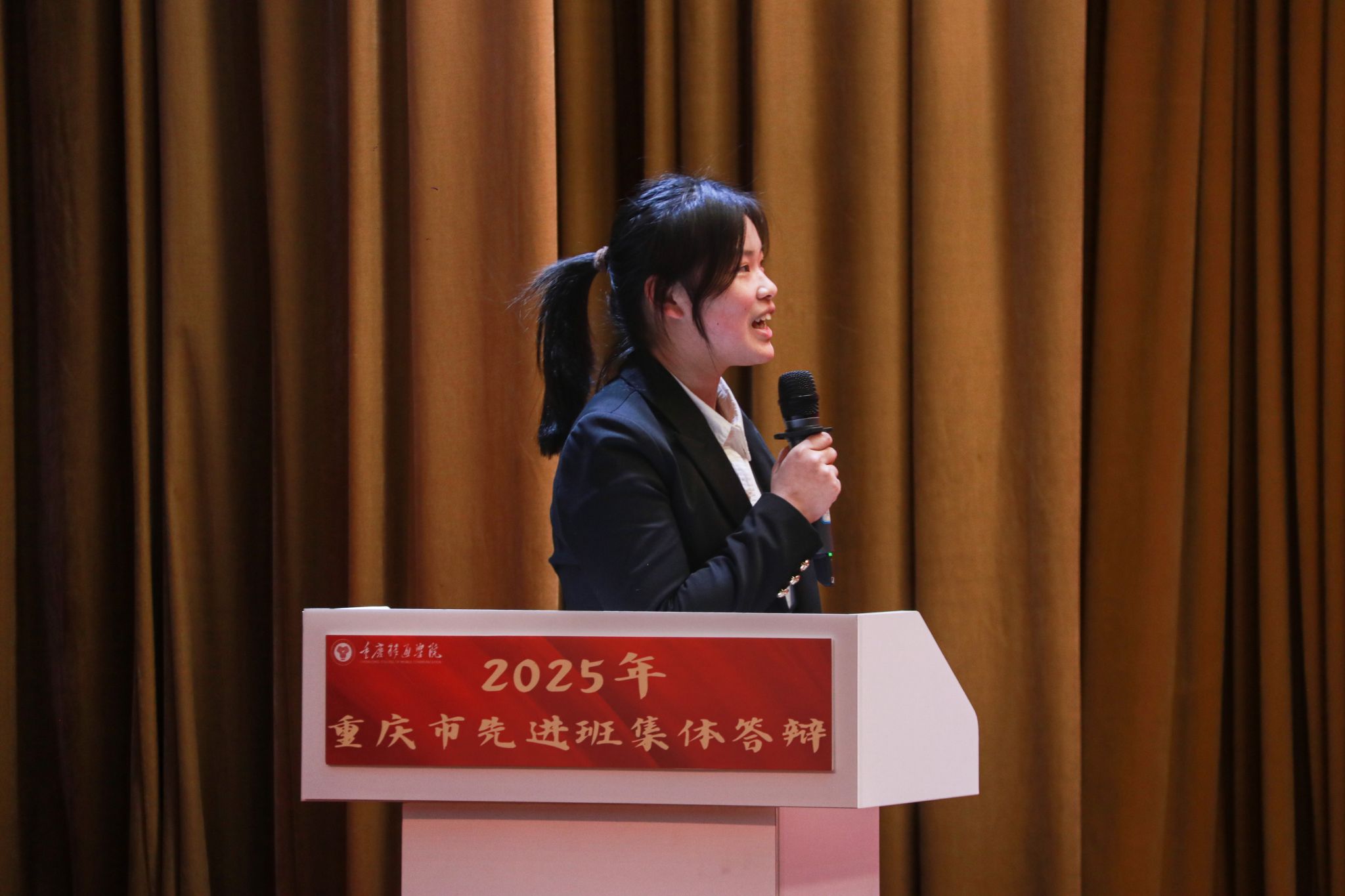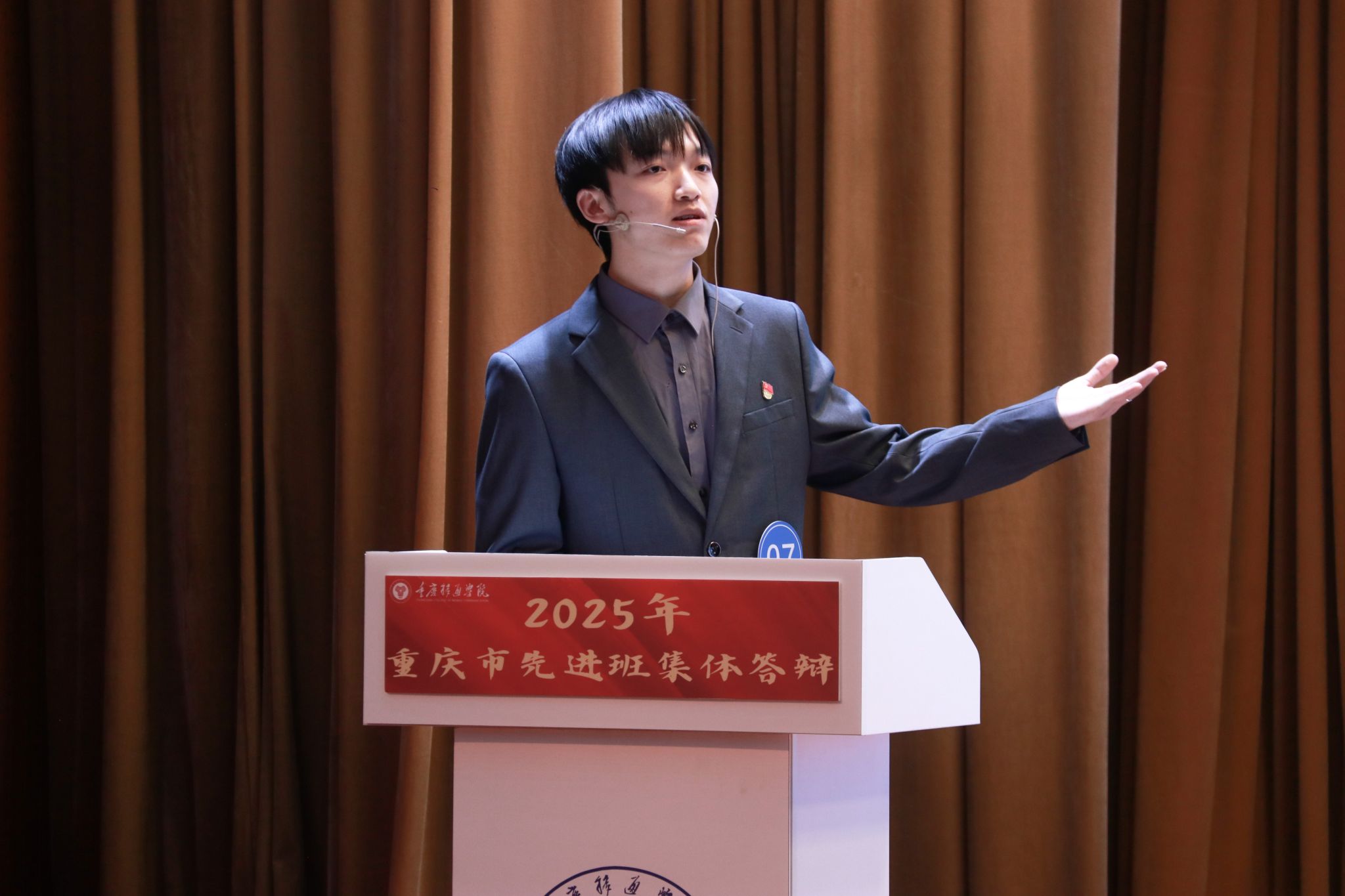 风好正是扬帆时,奋楫逐浪向未来。为践行社会主义核心价值观,培树先进典型,凝聚榜样力量,我校于4月16日在下里巴人剧场举办2025年重庆市高校学生先进班集体答辩会。经过班级申报、学院选拔推荐,共有10个优秀班级脱颖而出,参与本次答辩。莅临现场的评委老师包括学生处、教务处、财务处、学生处、团委、书院部、艺术教育中心、竞技体育中心等相关职能部门教师代表、纪检监察专员廖春花老师。