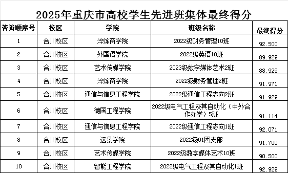 青春正当时,奋进新征程。各优秀班级通过本次先进班集体评选活动,充分发挥示范引领作用,一方面激励同学们增强集体荣誉感和团队精神,在专业学习、创新实践和社会服务中勇攀高峰;另一方面营造“见贤思齐、力争上游”的良好氛围,引导我校学子在互学互鉴中提升综合素养,在团结奋进中彰显责任担当。希望同学们在未来凝聚合力、砥砺前行,为学校高质量发展注入更多青春活力!