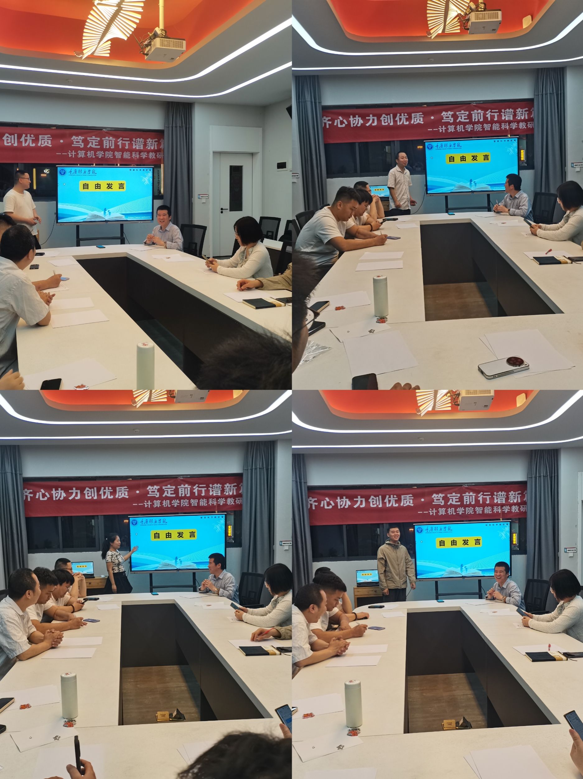 专业建设讨论中,教师们聚焦课程体系优化。建议紧密结合行业需求与学科前沿,对现有专业课程进行系统性梳理与调整。例如,在课程内容中适时融入最新的智能科学应用案例,确保学生所学知识与实际应用无缝对接。此外徐主任深入细致地为大家讲解了教学三大件——教学大纲、教学计划和教材编写的要点与技巧。他的讲解深入浅出,为提升教研室的教学质量和专业建设提供了宝贵的指导。