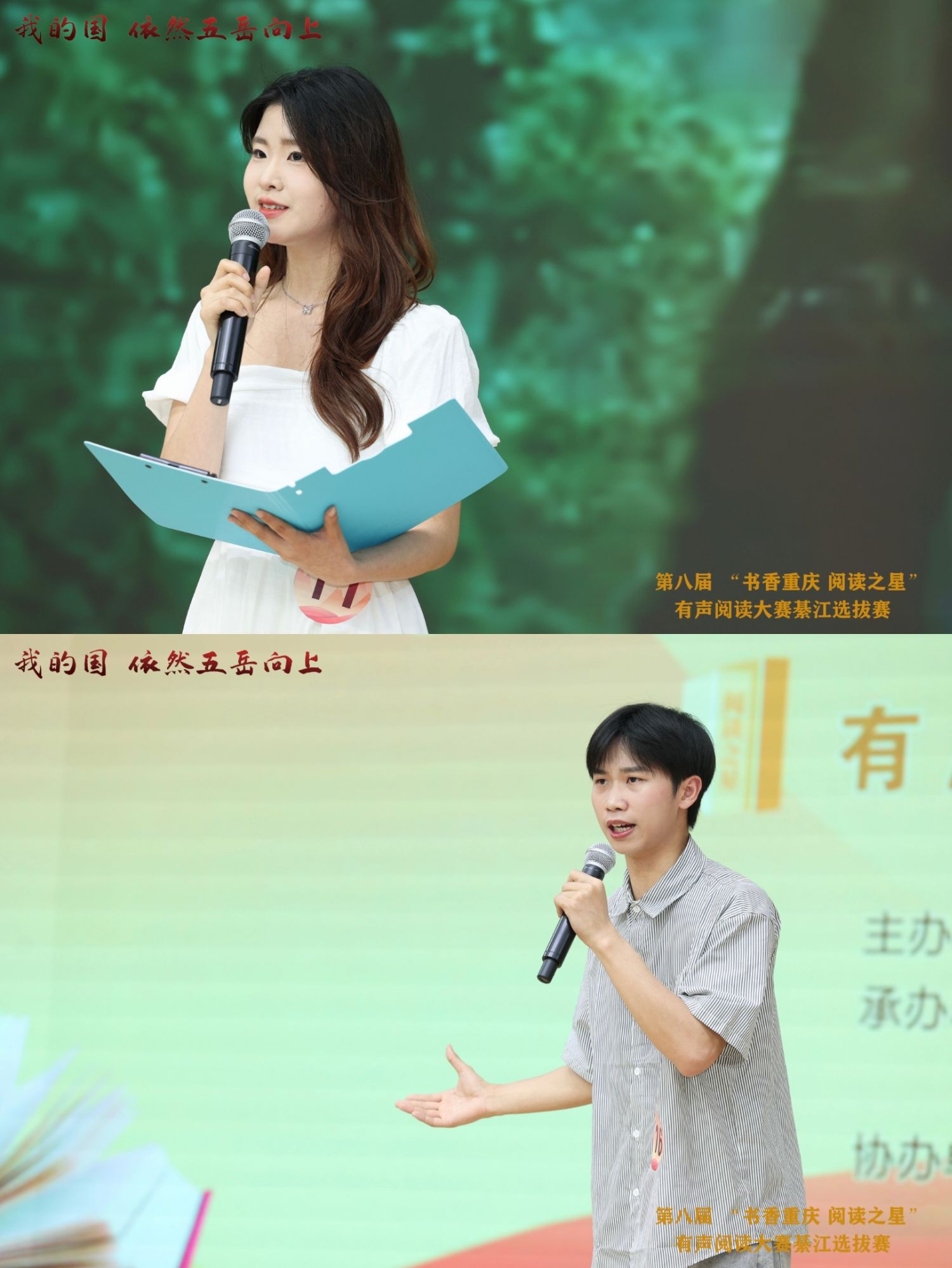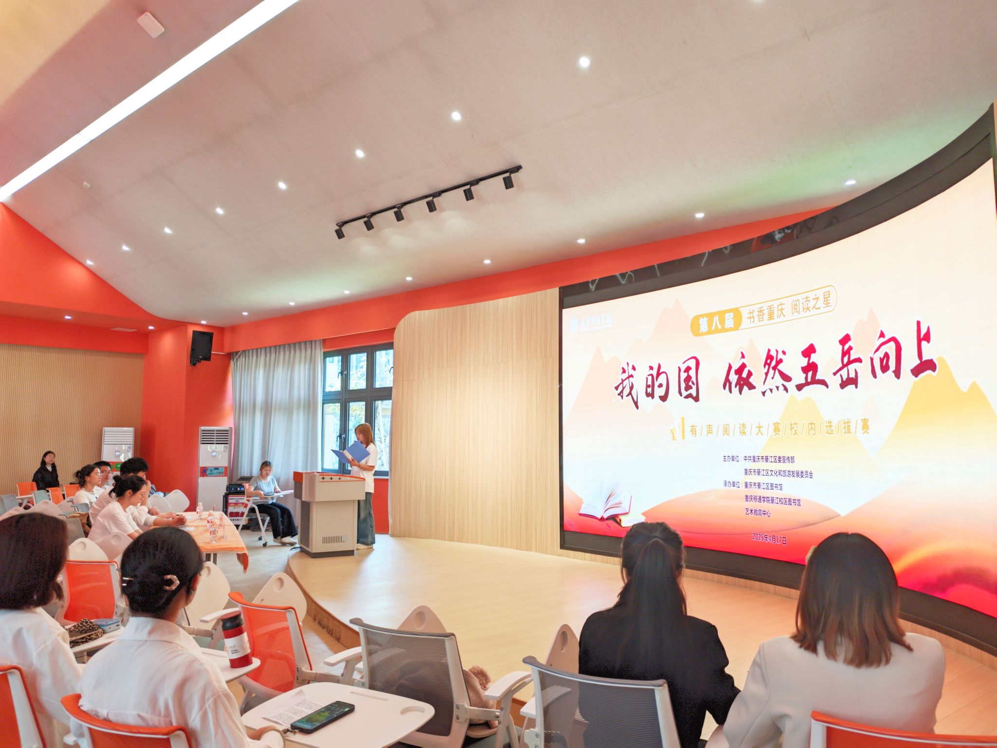 带着校赛的荣誉与自信,任秋静和周科池踏上了区级有声阅读大赛选拔赛的征程。此次区级赛事高手如云,竞争异常激烈,来自綦江区各校各单位的优秀选手齐聚一堂,各展风采,犹如一场没有硝烟的战争。但两位同学毫不畏惧,仍以饱满的热情和昂扬的斗志迎接挑战。