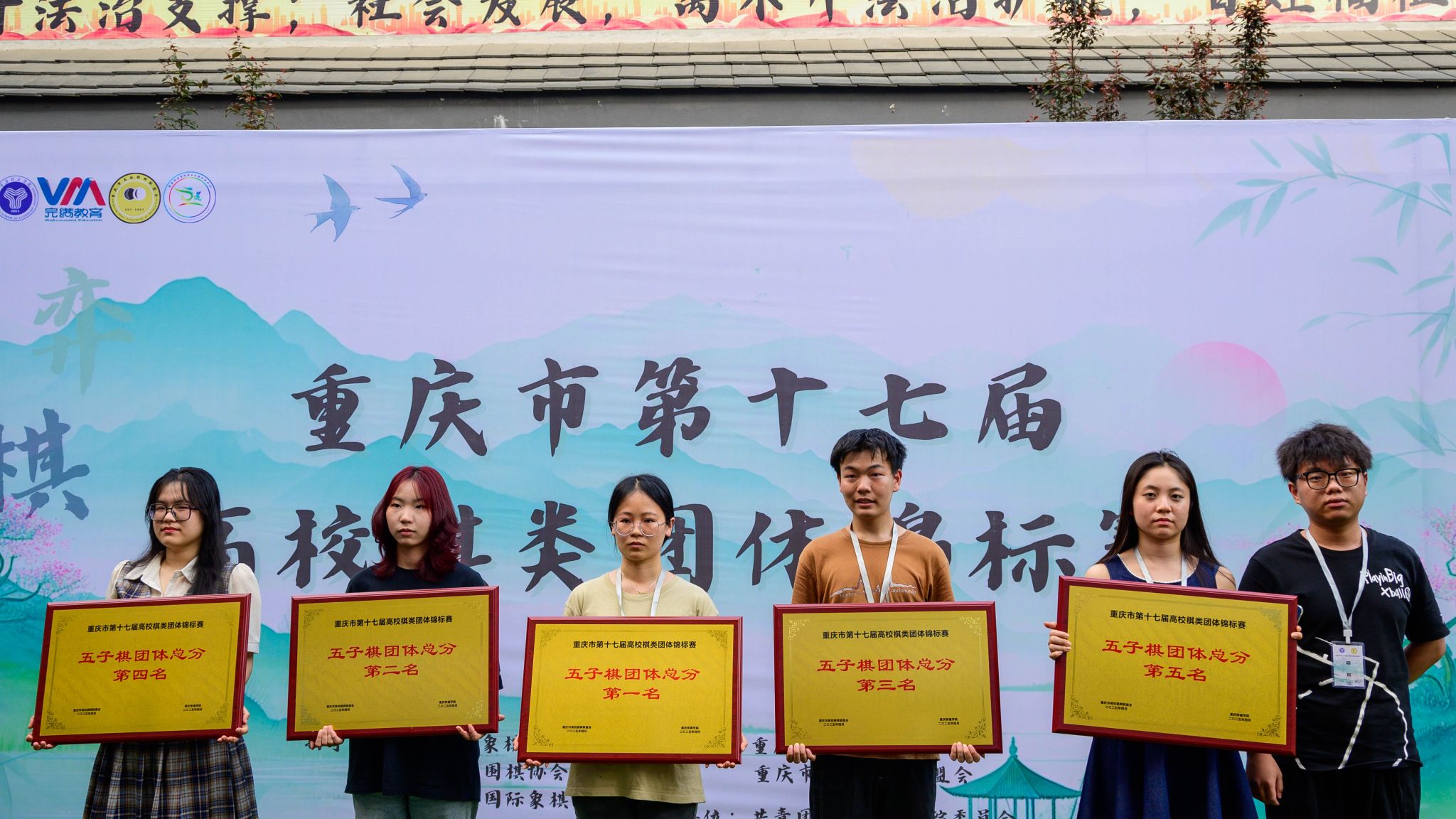 此外,比赛还设置了各个棋种的团体奖项。棋盟代表队一队(象棋团体第一名)、西南大学北碚校区一队(围棋团体第一名)、棋盟代表(五子棋团体第一名)、重庆大学虎溪校区(国际象棋团体第一名)、重庆城市科技学院(国际跳棋团体第一名)凭借精湛的棋艺,在各自的项目中获得了冠军。他们在赛场上的精彩表现,定格了本次锦标赛的经典瞬间,也为其他选手树立了榜样。