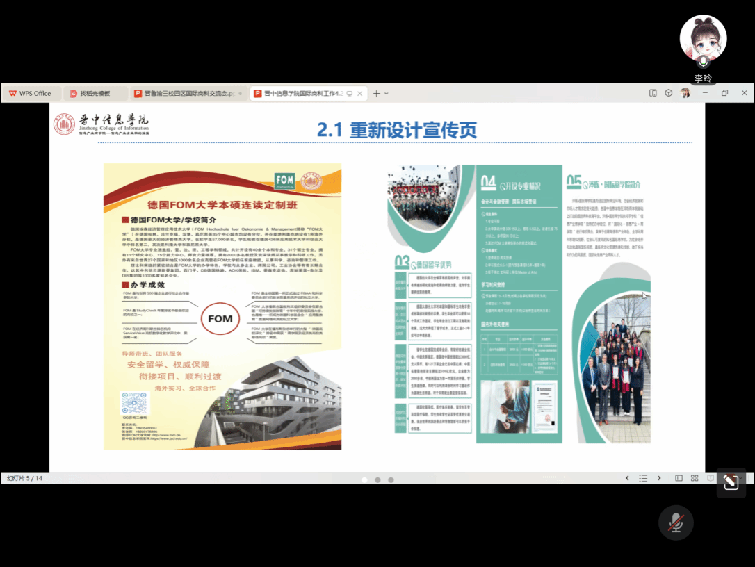 在FOM4 + 1本硕直通项目招生工作方面,合川校区苏婷老师对本学期以来的招生工作进行了介绍,展示了本学期以来在项目宣传方面以及在招生过程中所采取的相关策略。