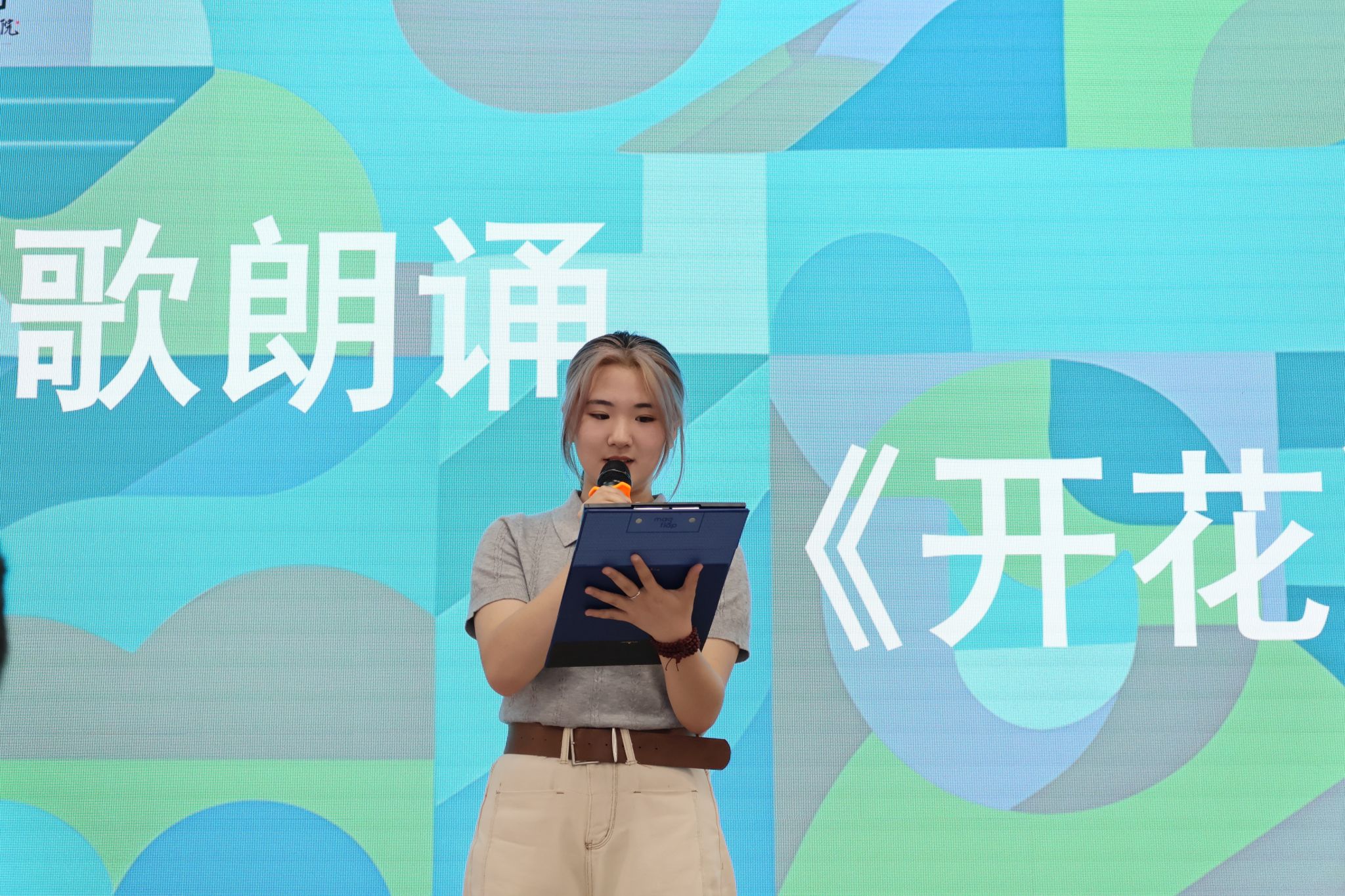 活动伊始,来自创意写作学院新媒体工坊的金郁洁同学以一首诗朗诵《开花》拉开序幕。在悠扬的配乐中,金郁洁同学以饱含深情的语言诠释了文字的力量,为发布会奠定了诗意与激情的基调。随后,主持人胡雨婷、李熙熙登台,以“春风唤醒万物”为喻,引出了《无界Limitless》的创刊初心——汇聚灵感星河,打破文学形式的枷锁。