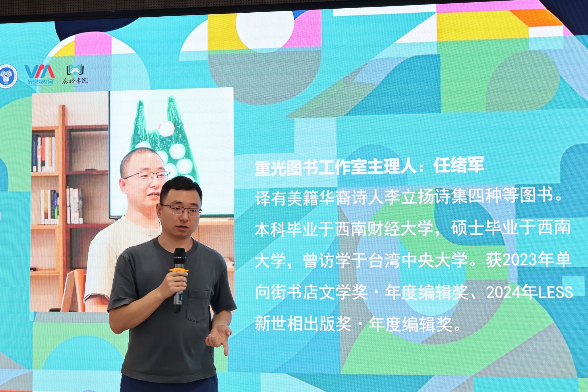 发布会现场,重庆移通学院创意写作学院院长吴帆、重光图书工作室主理人任绪军、创意写作学院王基胜、夏曦等教师代表,以及廊桥书院发展导师刘剑雄、闫欣怡等嘉宾共同出席。
