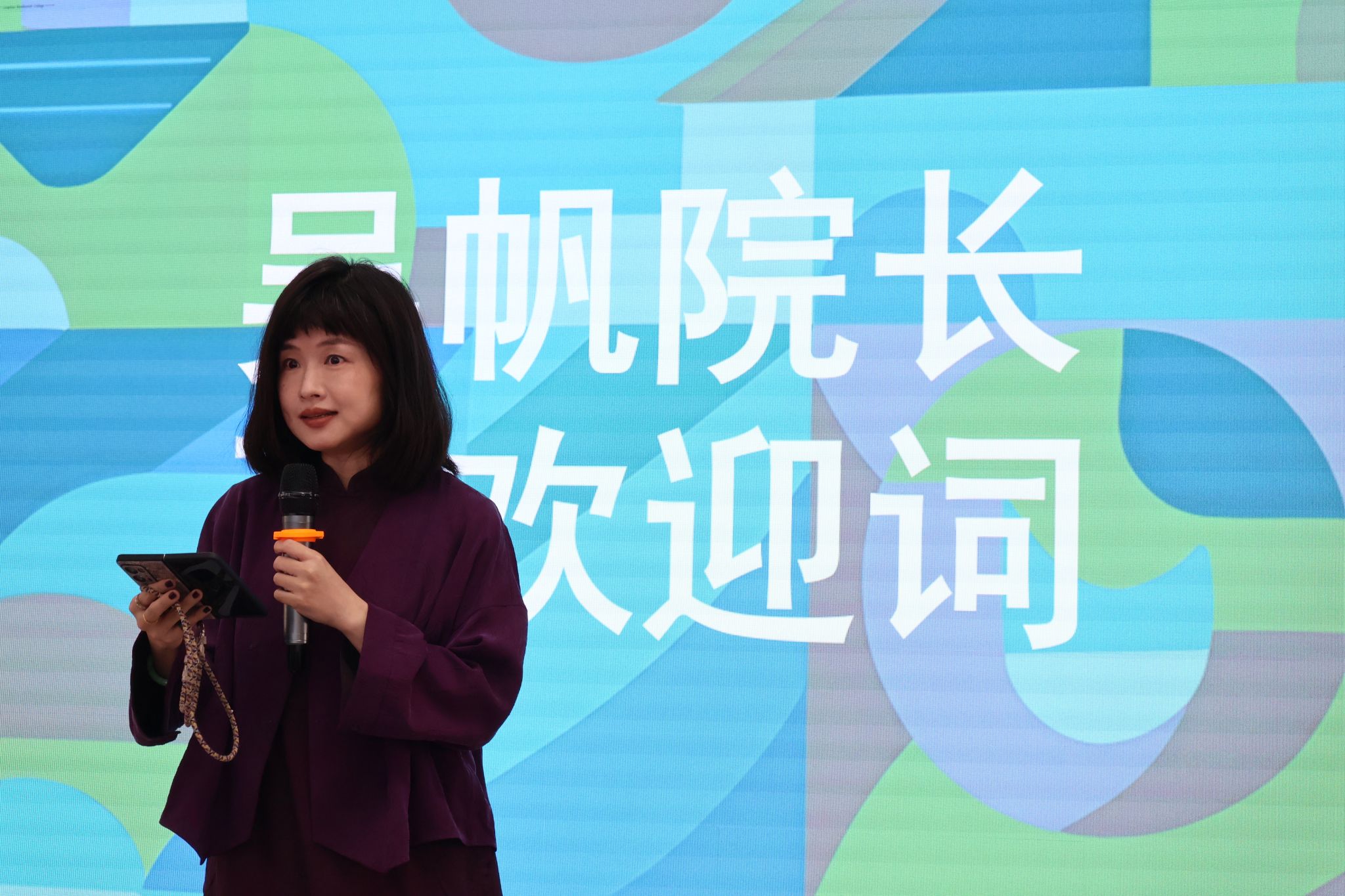 吴帆院长首先上台致辞,她指出:《无界Limitless》是学院特色办学理念的结晶,是三江文学社师生、作家班八个工坊的智慧凝聚,是廊桥书院与全体创意写作学子共同耕耘的文学原野上开出的第一朵花。这份学生文学杂志或许略显青涩,但青涩本身就是青春文学的勋章。最后,吴帆院长向大家发出呼吁:“写作是让个体生命在纸上长出根系,而《无界》愿做一片允许所有根系自由交缠的土壤。让我们共同守护这片土壤,等待下一个春天。”