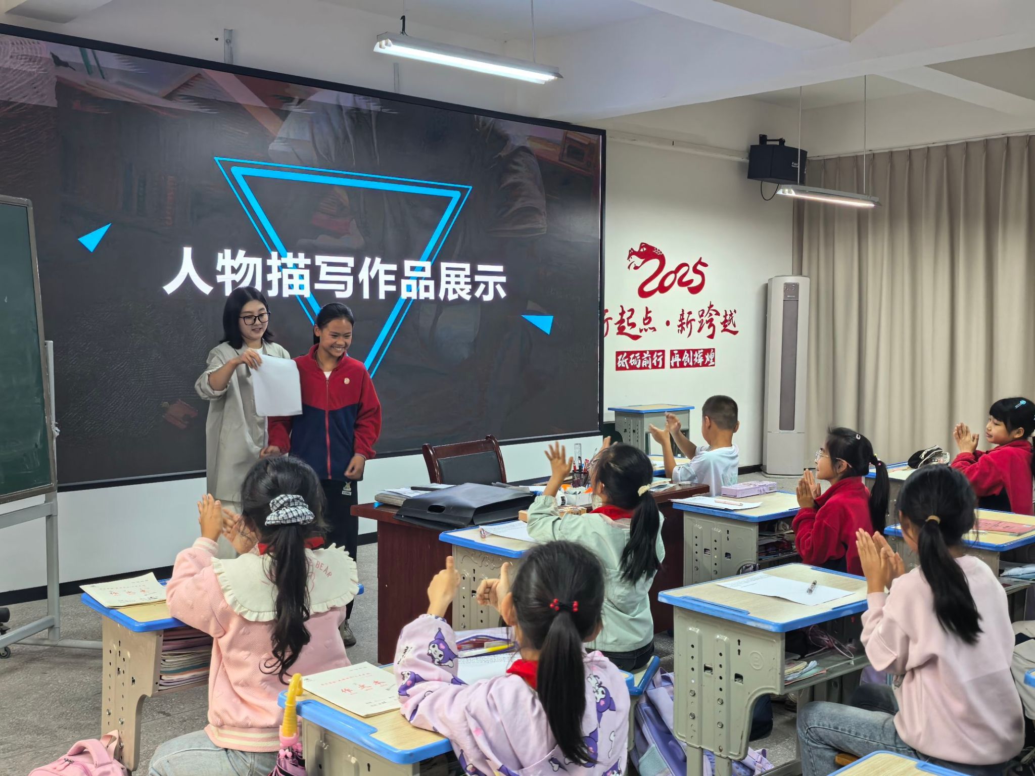 为落实重庆移通学院“教育教学三提三创”主题年活动方案,深入推进高校服务地方、促进基础教育发展的校际合作新模式,2025年4月24日下午,重庆移通学院綦江校区创意写作学院作家岗教师马静、殷文佳、王恒绩走进长乐小学。主讲老师马静为涵盖三至六年级的三十余名“写作、主持、演讲”兴趣班的学生,带来了一场题为《人物描写:让人物活灵活现》的写作课程。这堂生动有趣的写作公开课,标志着重庆移通学院与长乐小学的校际合作项目正式拉开序幕。“大学老师给我们上课,太好玩了。”一名三年级的女生跟她的班主任欣喜地报信。在90分钟里,课堂上始终保持高密度的师生互动方式,深深地打动了长乐小学兴趣班的孩子们。创意写作学院苏瓷瓷院长说,这只是创意写作学院与綦江四所中小学校际合作的第一站,与另外三所中学的课堂联动也将次第进行。