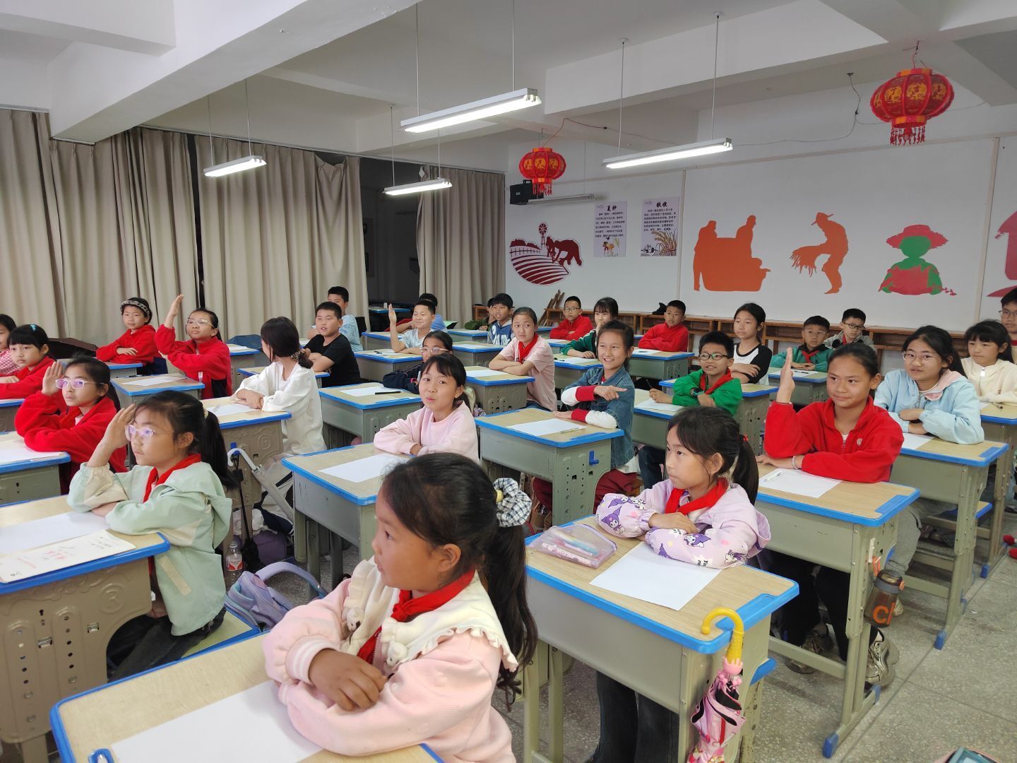 随后,在“故事接龙”环节,马静老师以“小明走进了神秘的森林”为开篇,引导学生们依次续写,并在续写过程中必须运用比喻或拟人手法。比如,有小朋友写道:“小明走进神秘的森林,他的眼睛里闪烁着好奇的光芒,像夜空中最亮的星。” 也有小朋友发挥想象,“森林里的小动物们像小精灵一样在跳跃”。比喻和拟人的恰当运用,让孩子们的文字充满了灵动与诗意。