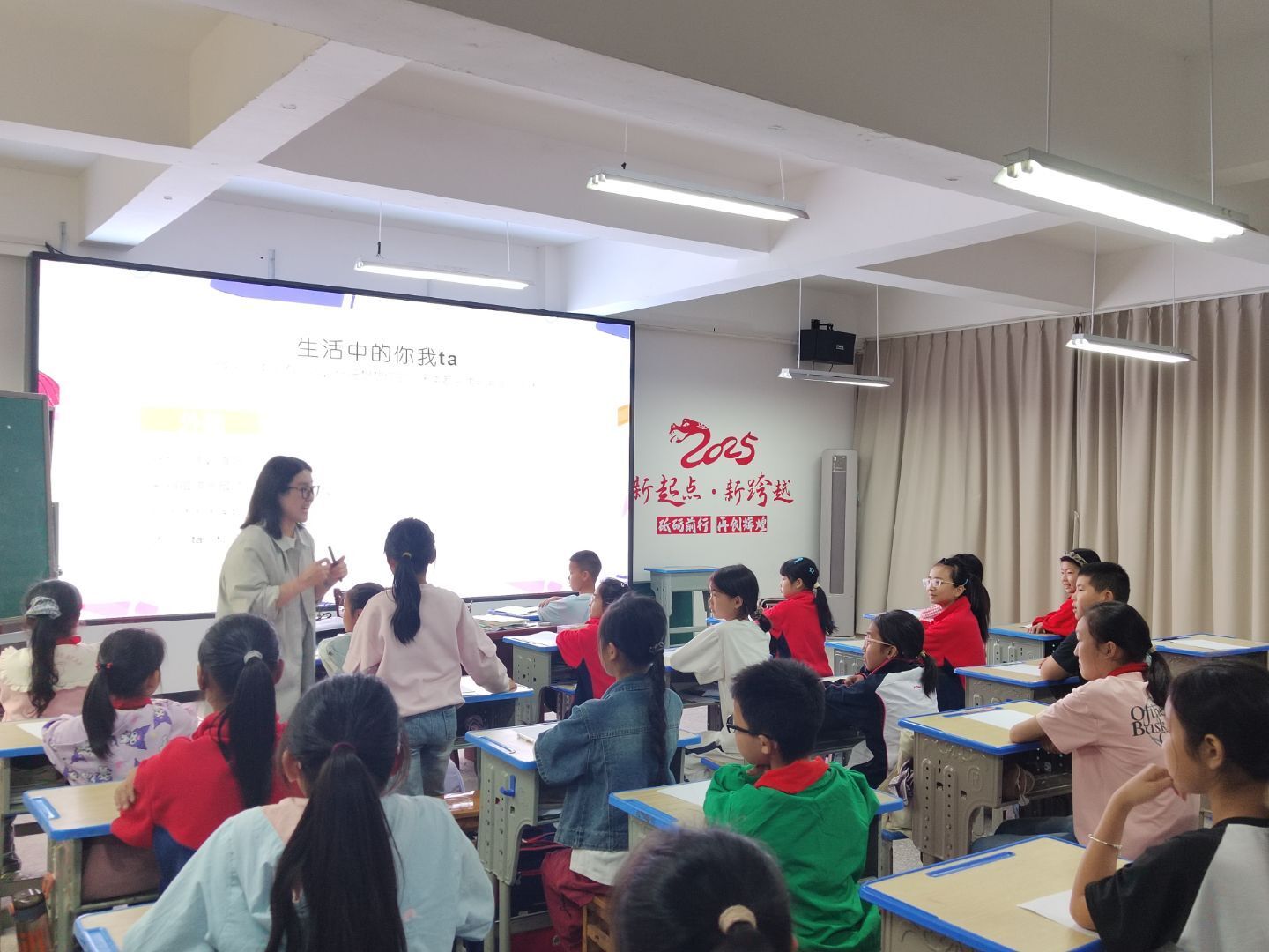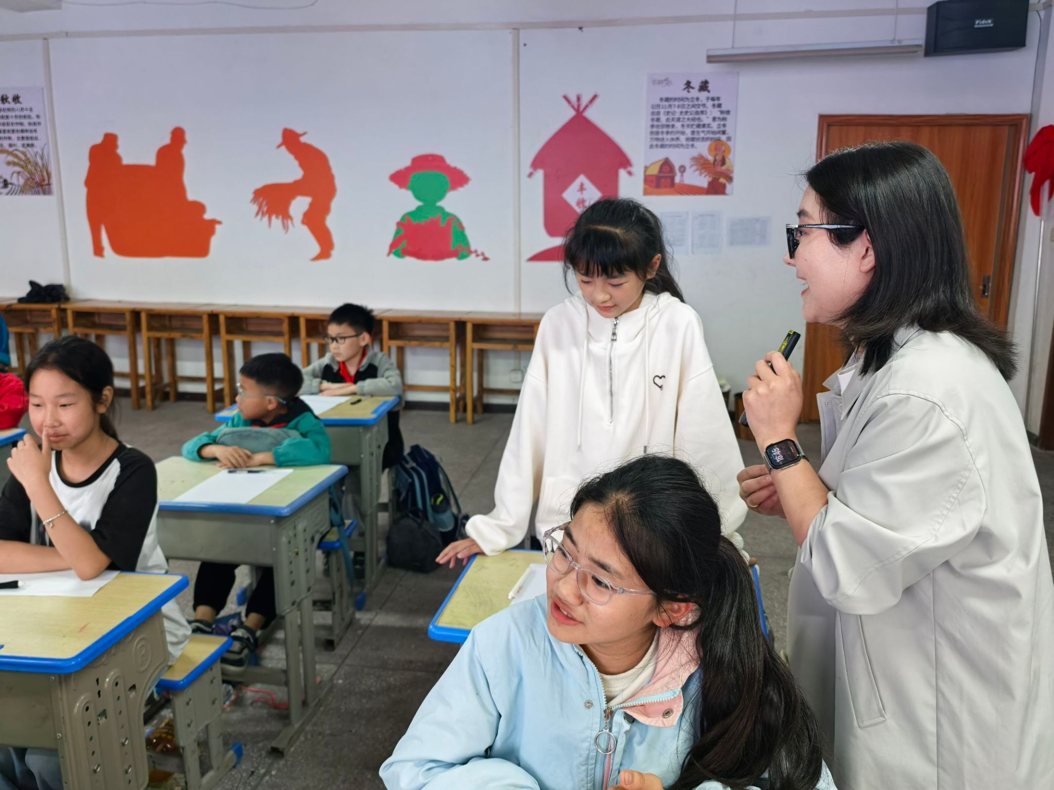 接下来,马静老师引导同学们进入更进一步的观察——“生活中的你我他”。她鼓励同学们以自己最熟悉的人为描写对象,观察身边家人、老师、同学的外貌、动作和语言细节,并以此为素材进行人物塑造。她特别强调:“写人物,首先要做好生活中的有心人。” 课堂上,许多学生积极举手,描述自己心中的“最美人物”——妈妈慈爱的微笑、老师严厉又温柔的眼神、同桌调皮的动作,细致生动,让人一下子能联想到这些生动活泼的形象。
