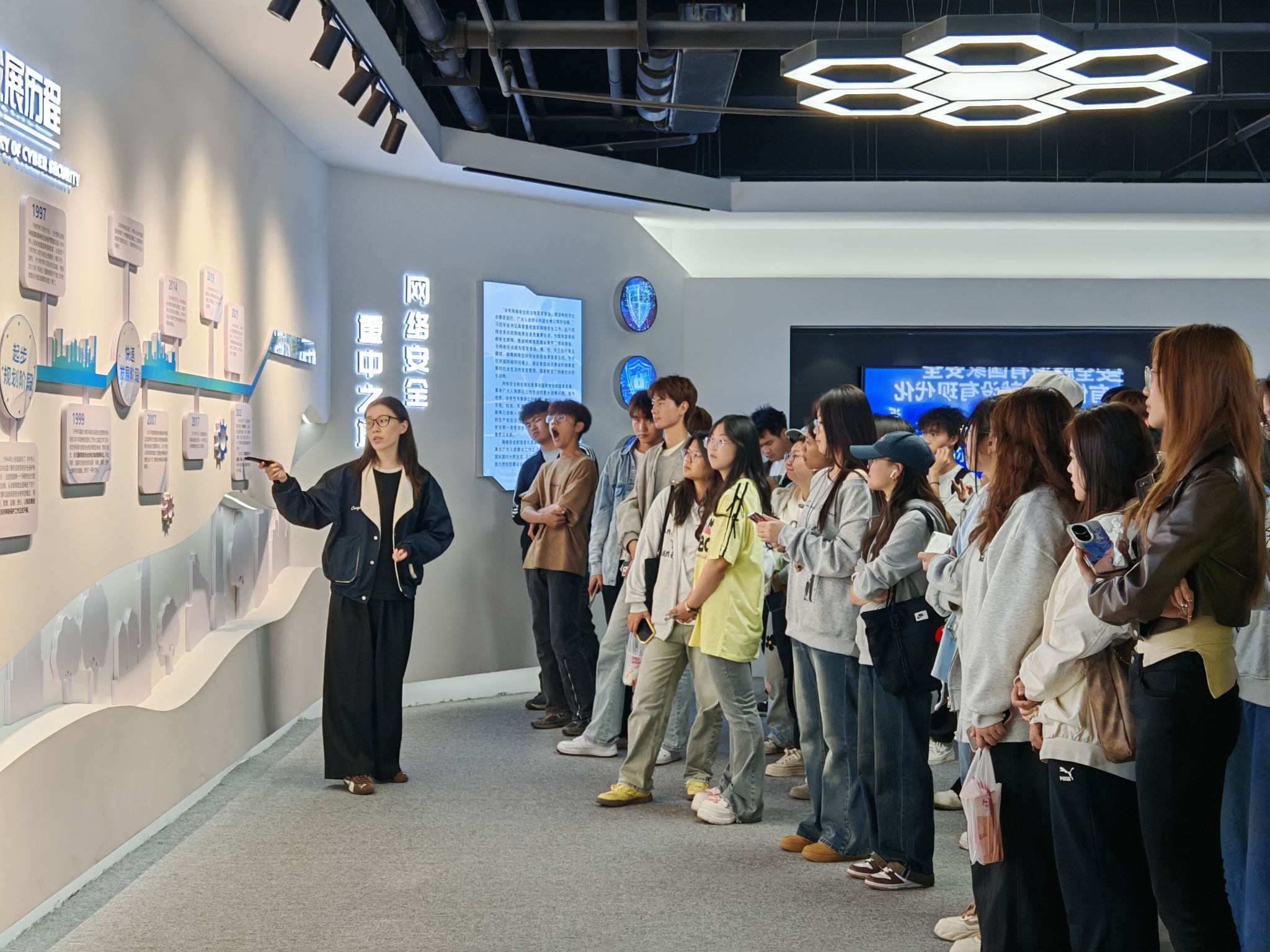 在易阅科技网络安全科普展厅,先进的科技设备让同学们大开眼界。借助“数字时空隧道”全息影像系统,大家清晰看到网络安全技术从传统防火墙到AI安全防御体系的发展历程。动态时间轴与交互式投影技术,生动展现网络安全领域的关键事件,让同学们沉浸其中,感受网安魅力。AI换脸体验区更是让大家切身体会到数字技术的两面性,在体验趣味的同时,也深刻认识到网络安全防护的重要性。