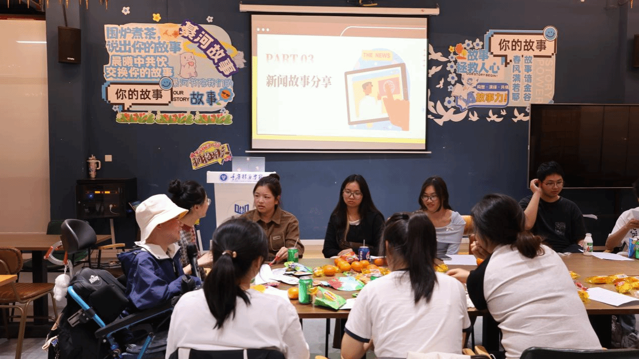 最后是“新闻故事分享”环节,同学们纷纷举手,分享近期身边的有趣故事。这些故事有的是校园生活中的点滴趣事,有的是社会实践中的难忘经历,还有的是对社会现象的深刻观察。通过一个个生动的故事,同学们传递着自己的所见所闻、所思所感,让大家在聆听中了解到不同的人物故事,拓宽了视野,增进了彼此之间的交流与理解。