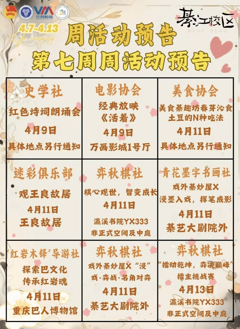 精彩活动持续进行中,下周邀请各位王子、公主们一起体验愉快的社团时光!