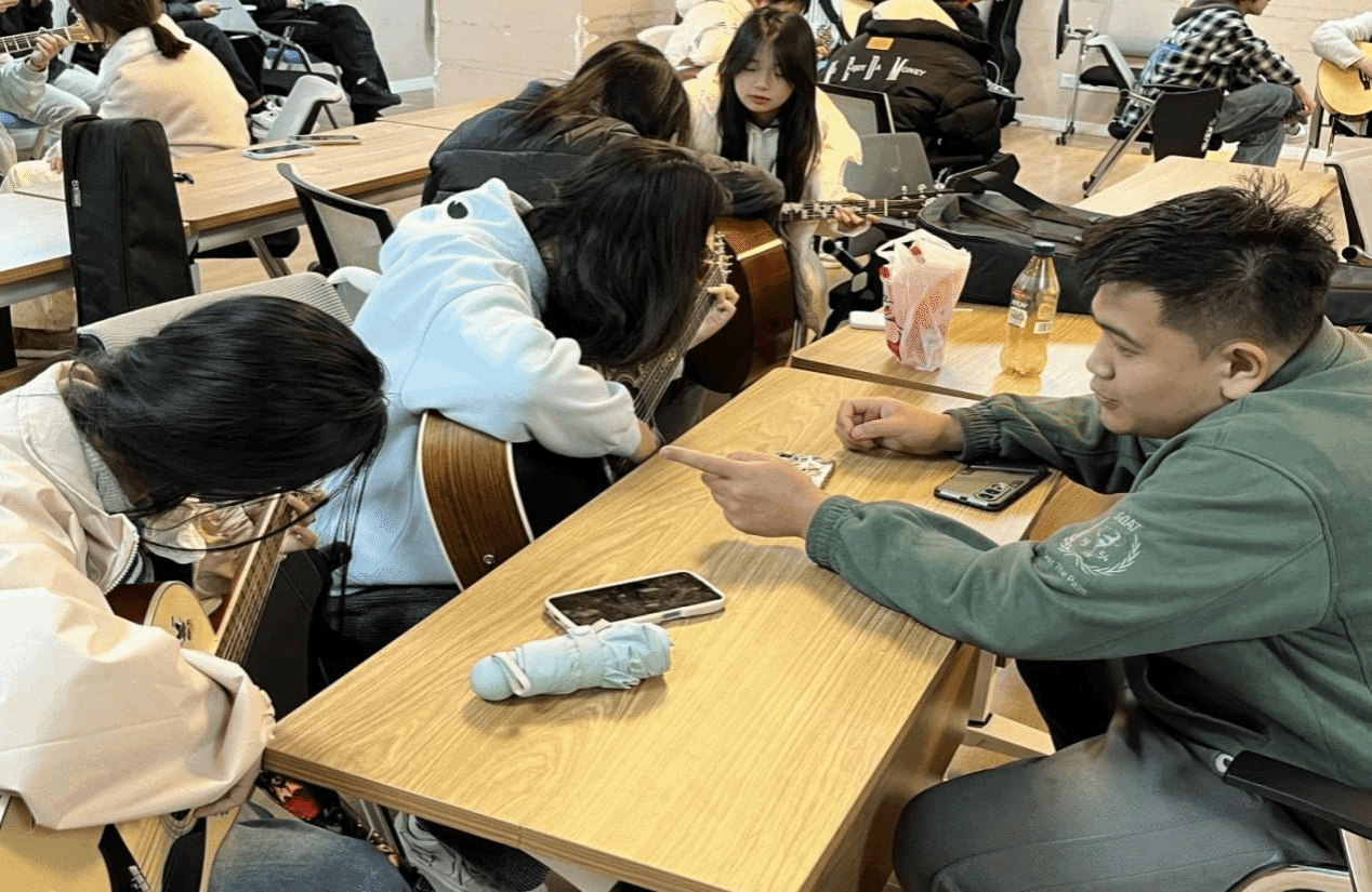 3月29日,“弦动青春——小白吉他入门教学活动第六期”在綦河书院三号楼小石潭·多功能活动室如期启幕。由吉客beginning吉他协会精心策划的本次音乐盛宴,不仅吸引逾五十名音乐爱好者齐聚一堂,更通过沉浸式教学与艺术展演的有机结合,搭建起校园美育实践的新场景。
