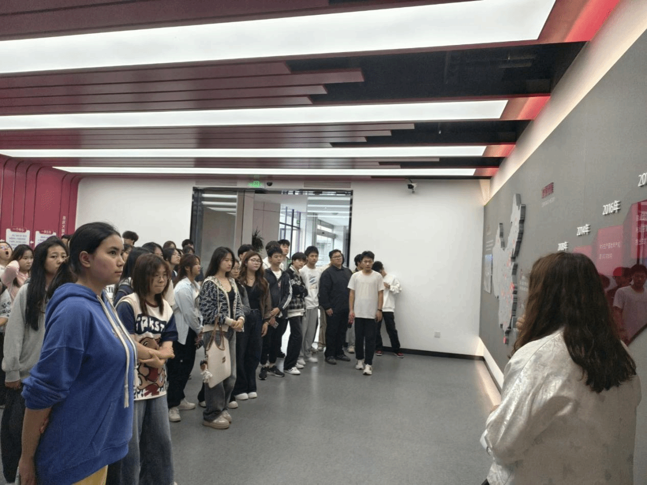 在文化展厅,同学们通过图文资料了解到,企业始终秉持“食品工业是道德工业”的理念,坚持选用优质原料,并参与制定重庆市“风味竹笋”“卤爪(翅)”地方标准,推动行业规范化。从最初的手工泡凤爪到如今的智能化生产线,梅香园始终以“创造优质生活”为使命,将传统工艺与现代科技深度融合,打造出南北皆宜的特色风味。
