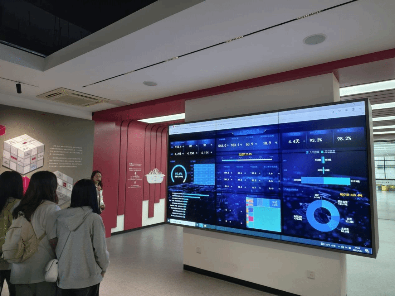 企业讲师向同学们展示了梅香园公司的智能化转型路径。近年来,公司投入超5000万元打造数字化车间,其中复合调味料智能反应生产系统通过动态调优技术,精准控制湿度、辣度等参数,替代传统人工炒制,使生产效率提升50%,质量合格率提高30%。此外,基于机器视觉的辣椒智能分选机可自动剔除次品,实现精选自动化,进一步降低运营成本。