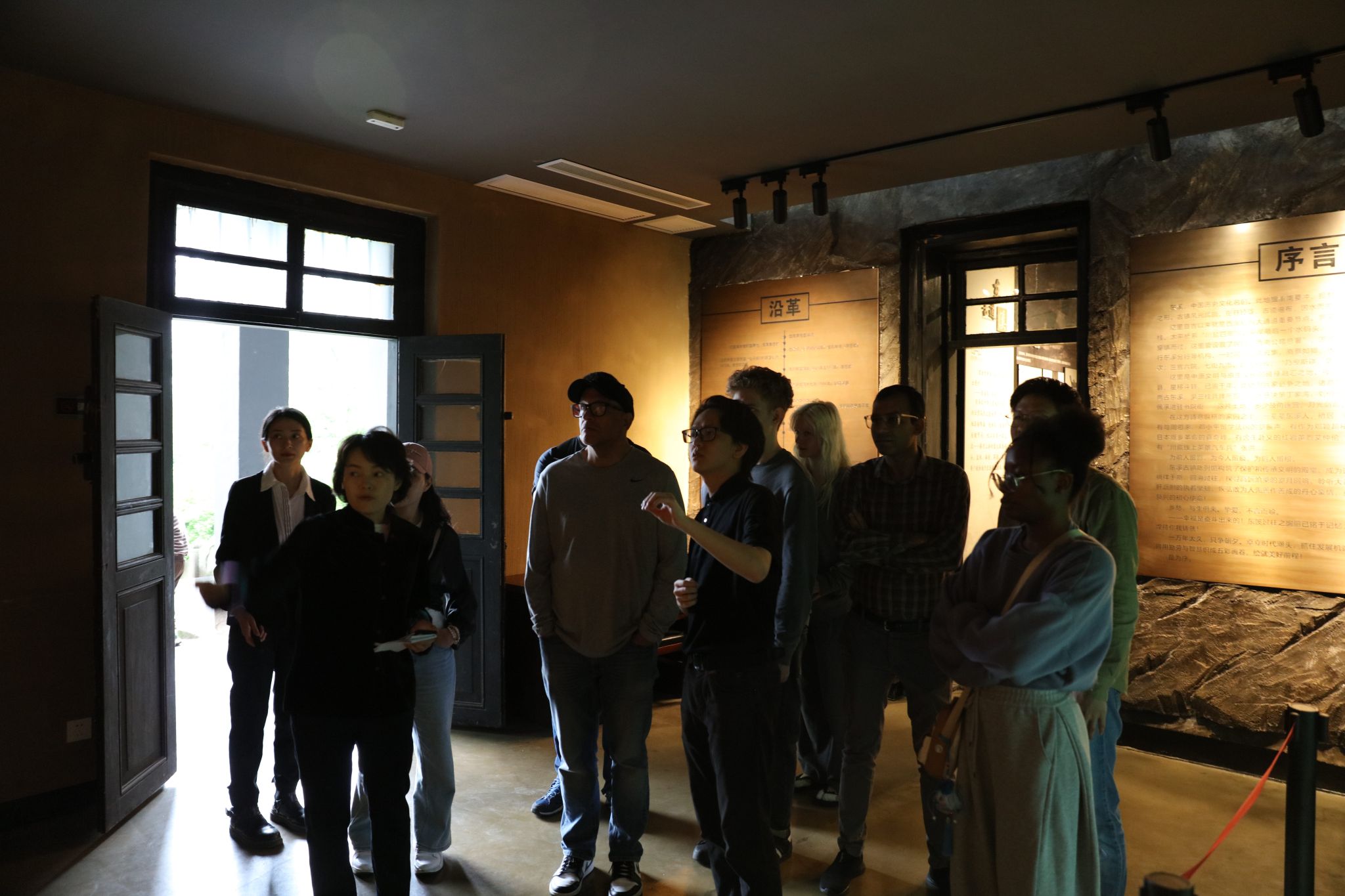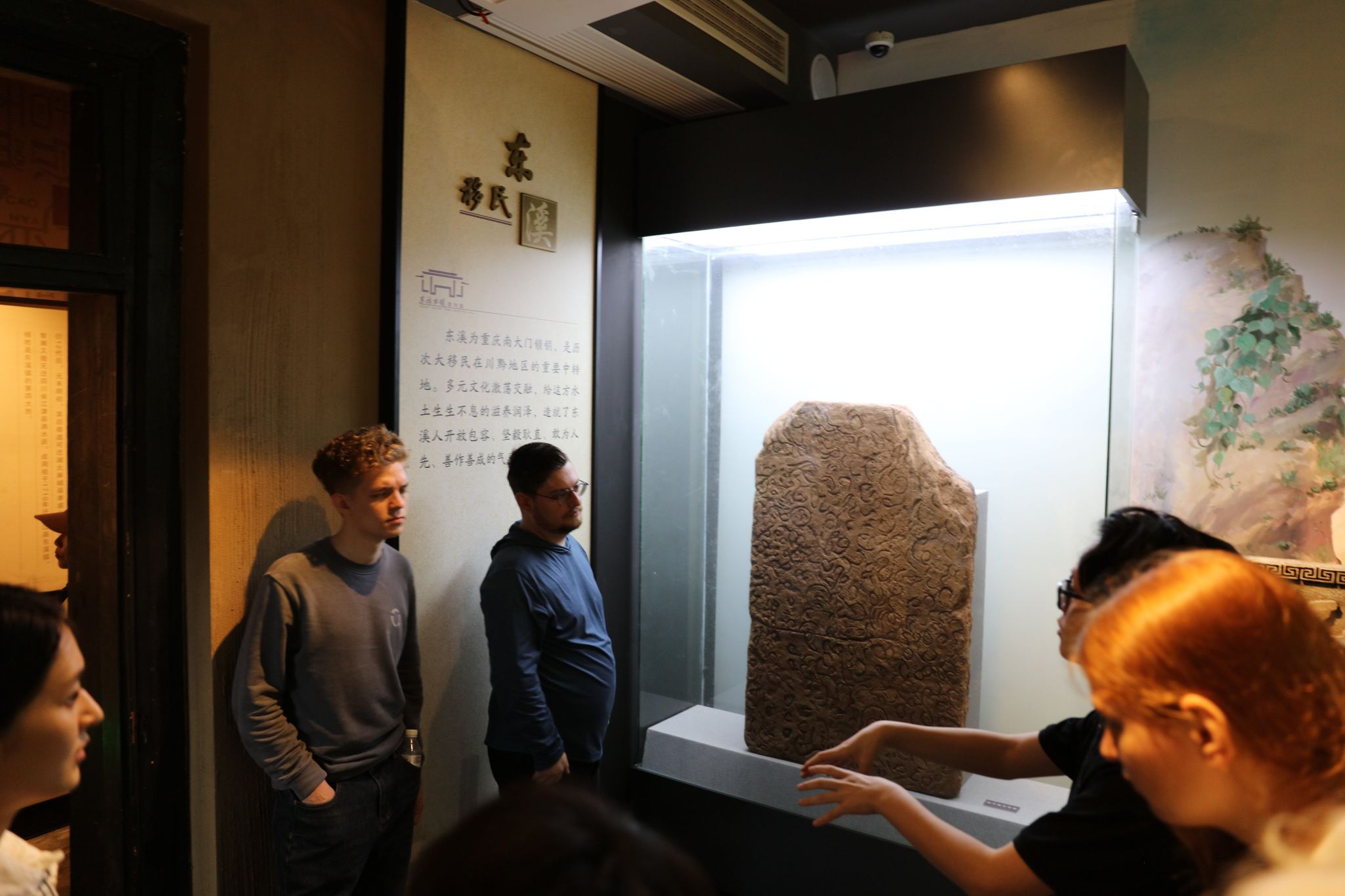 研学团首站走进东溪陈列馆,清代盐引、民国“麻乡约”运单等200余件文物,勾勒出古镇作为“渝南黄金商道”的繁华图景。东溪镇党委委员、宣传部长苏逸敏指着商路沙盘介绍:“鼎盛时期每日300余匹骡马中转盐茶,这里曾是西南商贸枢纽。”国际交流与合作处的老师们则兼任翻译人员,用国际友人们能听懂的语言解释这座千年古镇的历史文化。