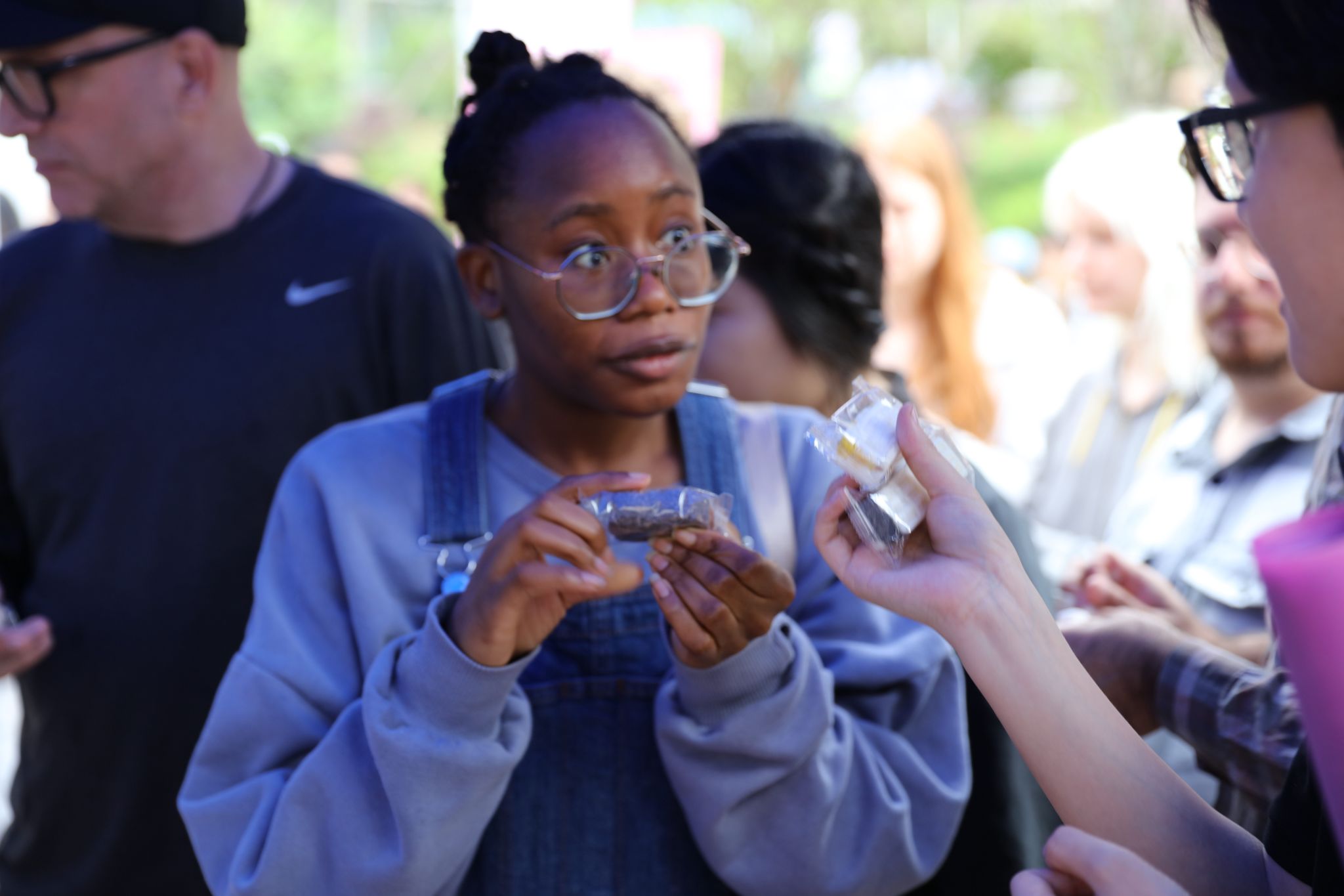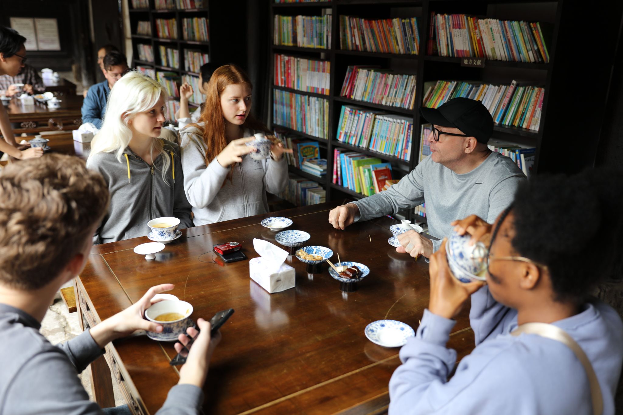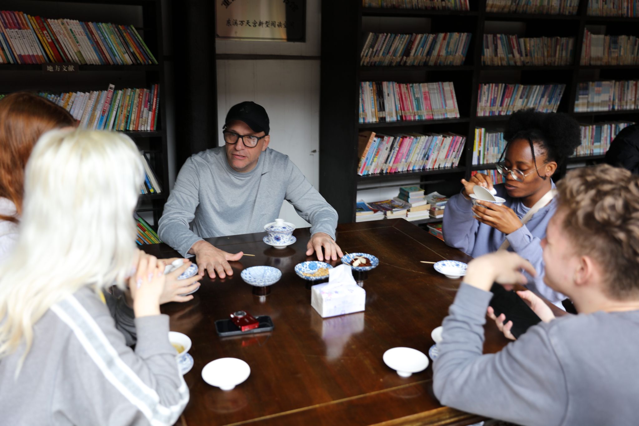 一旁的茶席上,大家都专注研习盖碗茶“三吹三浪”技法,搭配霍二花生酥、老太婆豆腐干、东溪花生等当地非遗美食,连赞:“中式下午茶的仪式感,藏在茶盖与碗沿的交响里。”