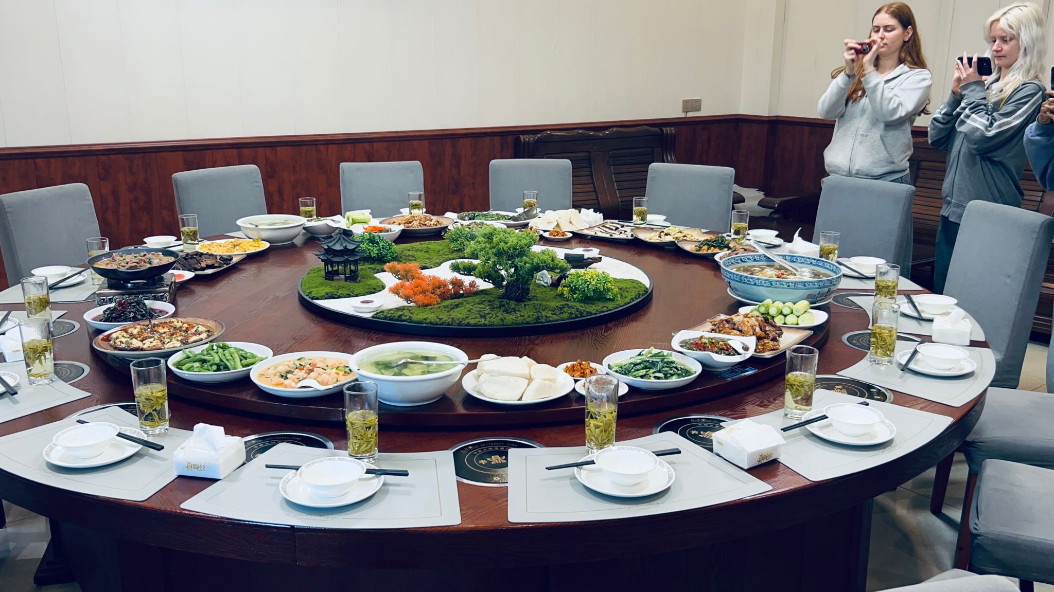 午餐时分,望澜汀餐厅精心准备的特色美食成为文化交融的注脚。东溪黑鸭、黄荆豆花、东西豆腐乳以及赶水米粉等多道特色菜肴环列,同时安排了足量的清真菜品和素食,体贴照顾巴基斯坦外教的饮食禁忌和素食主义留学生的习惯。苏逸敏宣传部长详细介绍每道特色菜品的由来,并表示均对身体有特别功效,外籍师生们不停用手机记录:“药食同源的理念,让美味成为文化对话的桥梁。”