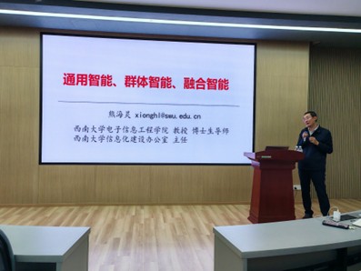 为深化校企合作、拓宽学生学术视野,2025年4月29日下午4点,智者楼 304 教室座无虚席。西南大学熊海灵教授受邀带来 “人工智能发展与群体智能” 主题讲座,以生动讲解和前沿思考,为大数据学院师生打开智能科技新视界。