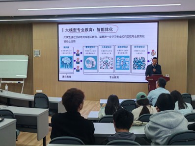 熊海灵教授首先以当下人工智能领域的热点事件为切入点,迅速吸引了在场师生的注意力。他从人工智能的发展历程讲起,系统梳理了从早期理论萌芽到如今深度学习技术取得重大突破的演进脉络,清晰呈现出人工智能技术如何一步步发展成为推动社会变革的核心力量 。