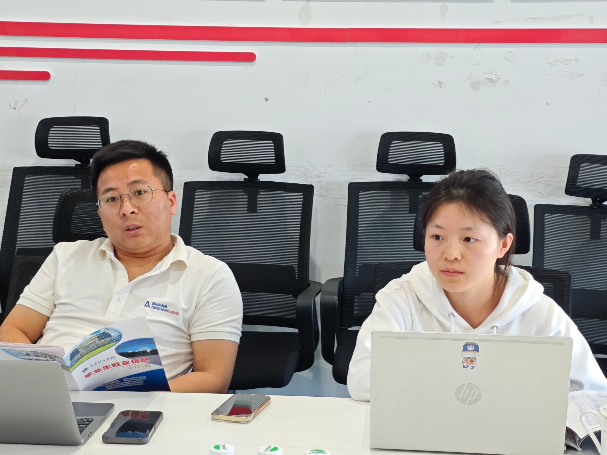会上,校企合作部总经理付秋实对公司目前的校企合作院校及业务情况进行了详细介绍,展现了公司在产教融合领域的积极布局;人力资源部总经理叶桂贞则聚焦公司岗位需求,如数据标注等热门岗位,并提出可借助学校平台开展宣讲活动,为学生提供更多契合实际的就业岗位,拓宽学生就业渠道;技术中心杨伟帆结合公司业务实际,介绍了公司在技术方面的相关要求,为学校人才培养提供了明确的方向指引。