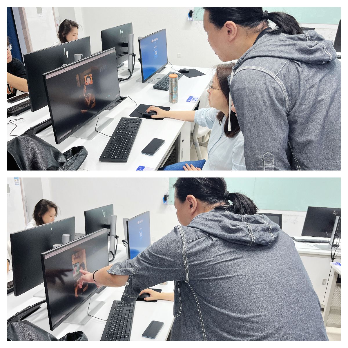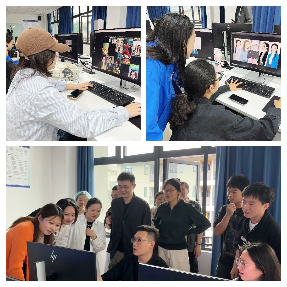 培训首日以 “AI 技术应用初探” 为主题,印隽老师系统解析 了AI 工具对影视创作流程的革新价值,通过行业案例库展示文生图、智能剪辑、动态合成等技术在前期策划、视觉开发、后期制作中的全流程应用逻辑。在实践教学环节,参训师生分组开展实战训练,依托 “即梦”“ 可灵 ”等专业 AI 平台,完成从创意文本到视听作品的转化实践。经过 3 小时高强度创作,6 部融合 AI 绘画算法与动态生成技术的短片顺利产出,其中《时光秘境》凭借独特的艺术表现力,展现了技术工具与创意表达的深度融合。2024级新媒体技术专业参训学生代表表示:“AI 现在对我们来说不再是单纯的工具,而是创意激发的‘智能协作者’,它帮助我们突破传统创作思维的边界,发现了影视表达的更多可能性。”