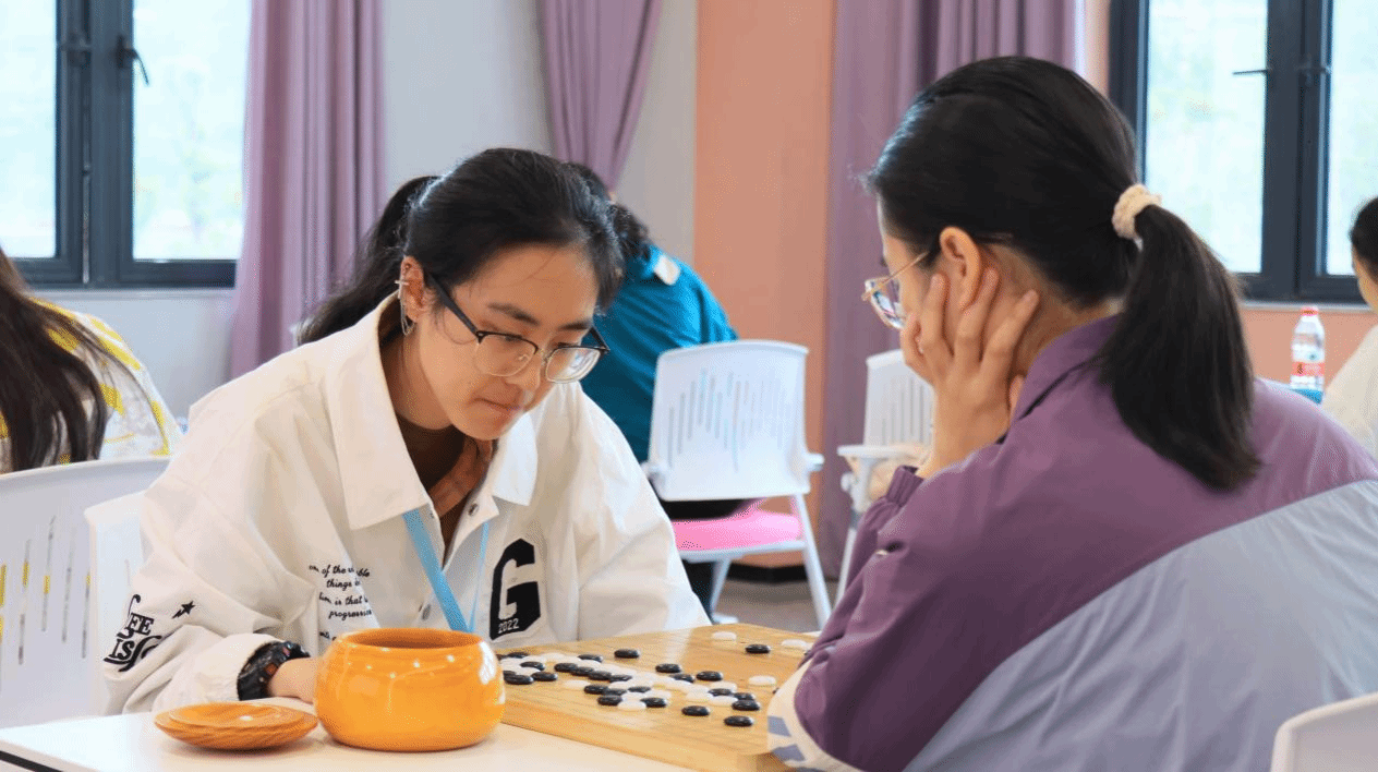 赛场华丽变身为“棋类乐园”,吸引逾100名参赛选手、校内800余名爱好者参与。活动现场设置“双人对弈”“三国象棋”“高尔夫井字棋”等趣味项目,选手们暂离高强度对局,在轻松氛围中感受棋类运动的多样魅力。来自成都中医药大学的史已凡尝试“三国象棋”后笑称:“平时专注围棋,这次跨界体验让我发现棋类互通的策略之美。”