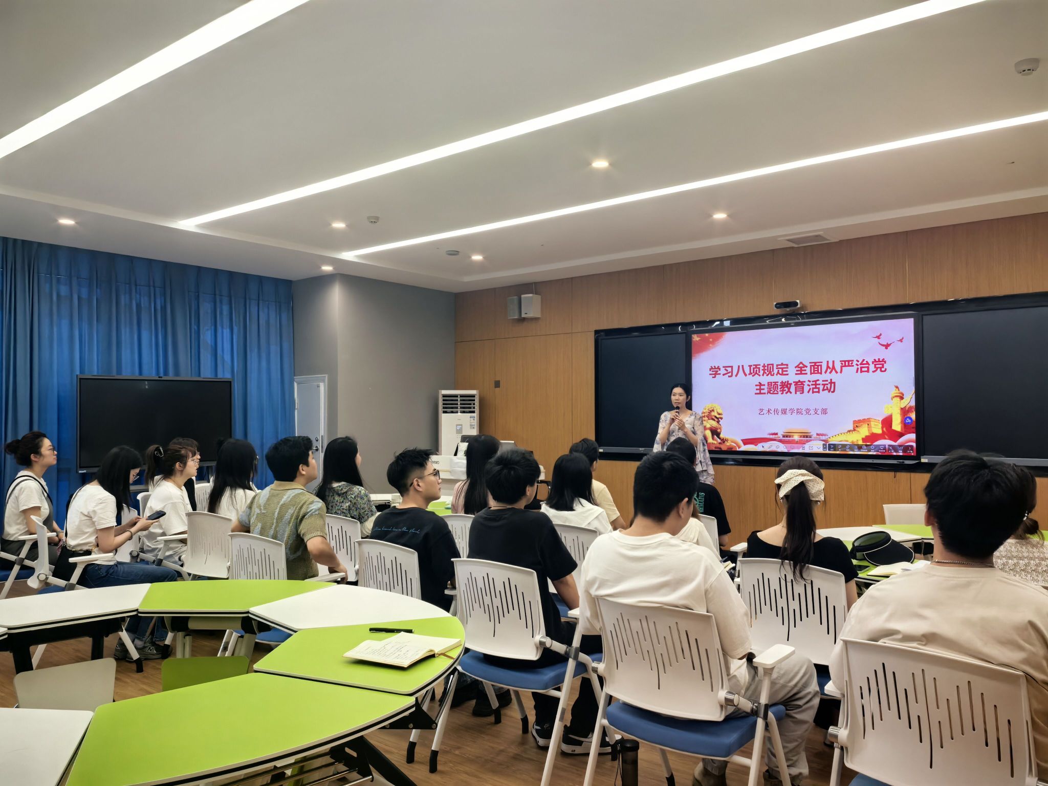 5月14日下午,艺术传媒学院党支部开展在天空书院302室开展“学习八项规定,全面从严治党”主题教育活动,首先李轶天书记强调了学习八项规定为今年党的理论学习主题,为贯彻落实二十大会议精神,本年度将围绕深入贯彻中央八项规定精神学习教育主题,进一步落实全面从严治党各项要求,推动党的作风持续向好向上,切实落实立德树人根本任务。