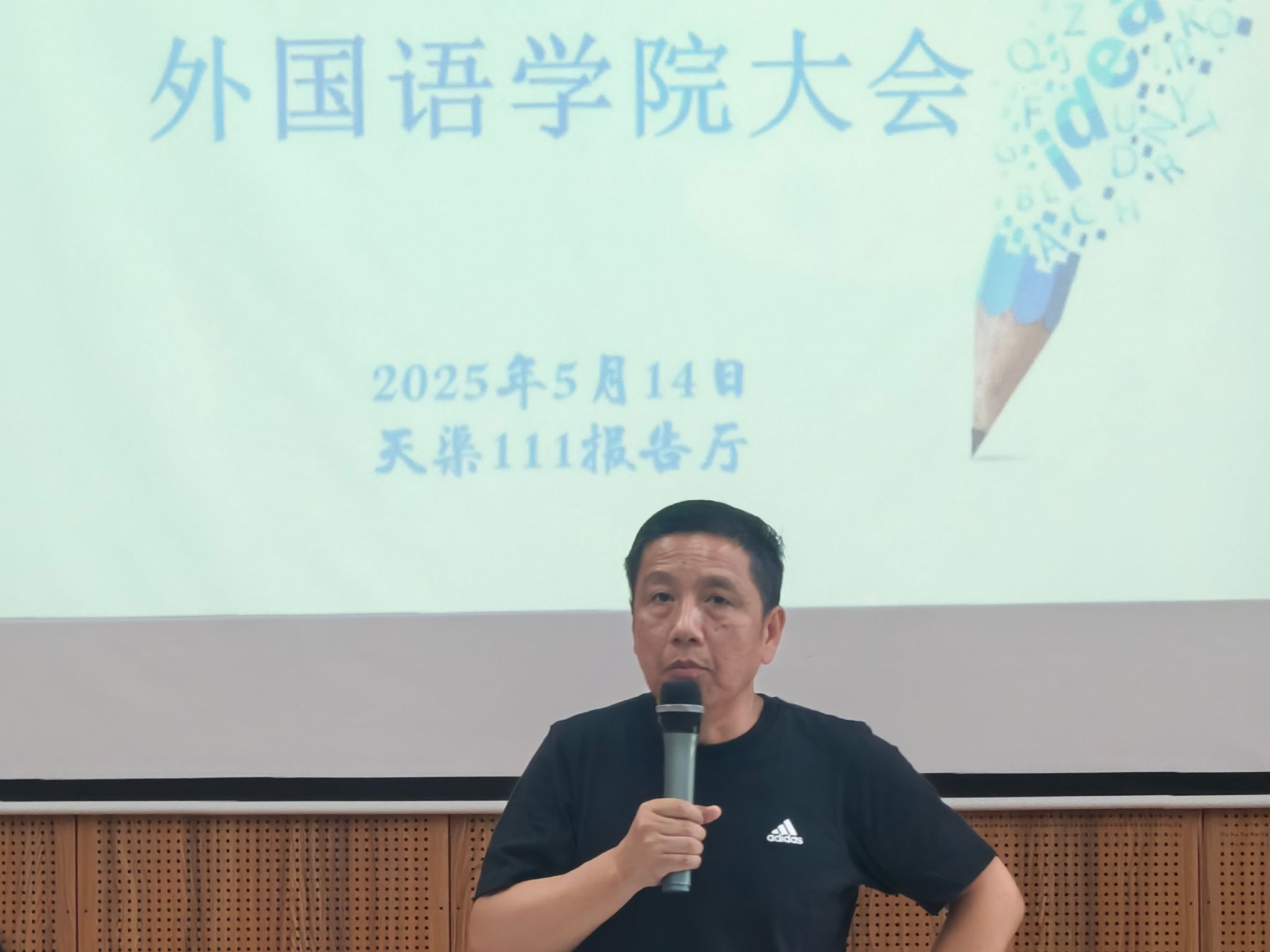5月14日,外国语学院在天渠111报告厅召开全体教职工大会,围绕“教育教学三提三创”主题年活动要求,全面贯彻学校教育教学重点任务部署,围绕调研提质、整改提效、内涵提级三大核心目标,系统推进教育教学改革与迎评促建工作。会议由院长吴世银主持,学院领导班子及全体教职工参会。