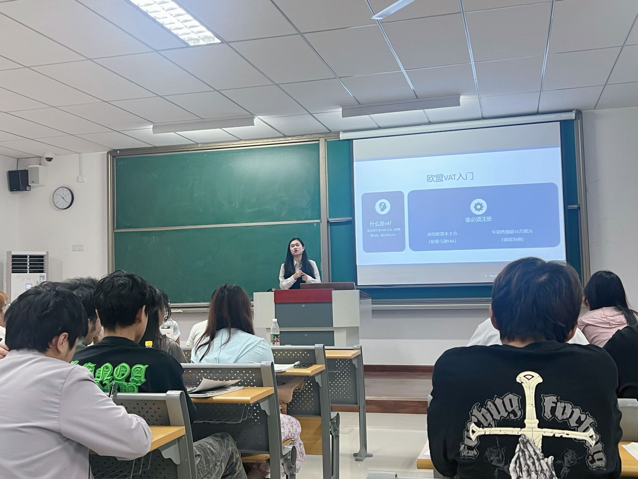 为深化产教融合、推进教学改革创新,切实拓宽学生行业视野,我校工商管理教研室积极践行 “四位一体双院制” 人才培育模式,5月14日上午,邀请重庆婧婧芒企业管理有限公司董事长刘妮妮走进 “高管课堂”,为《跨境电商物流》课程从跨境税务的视角开展了分享。