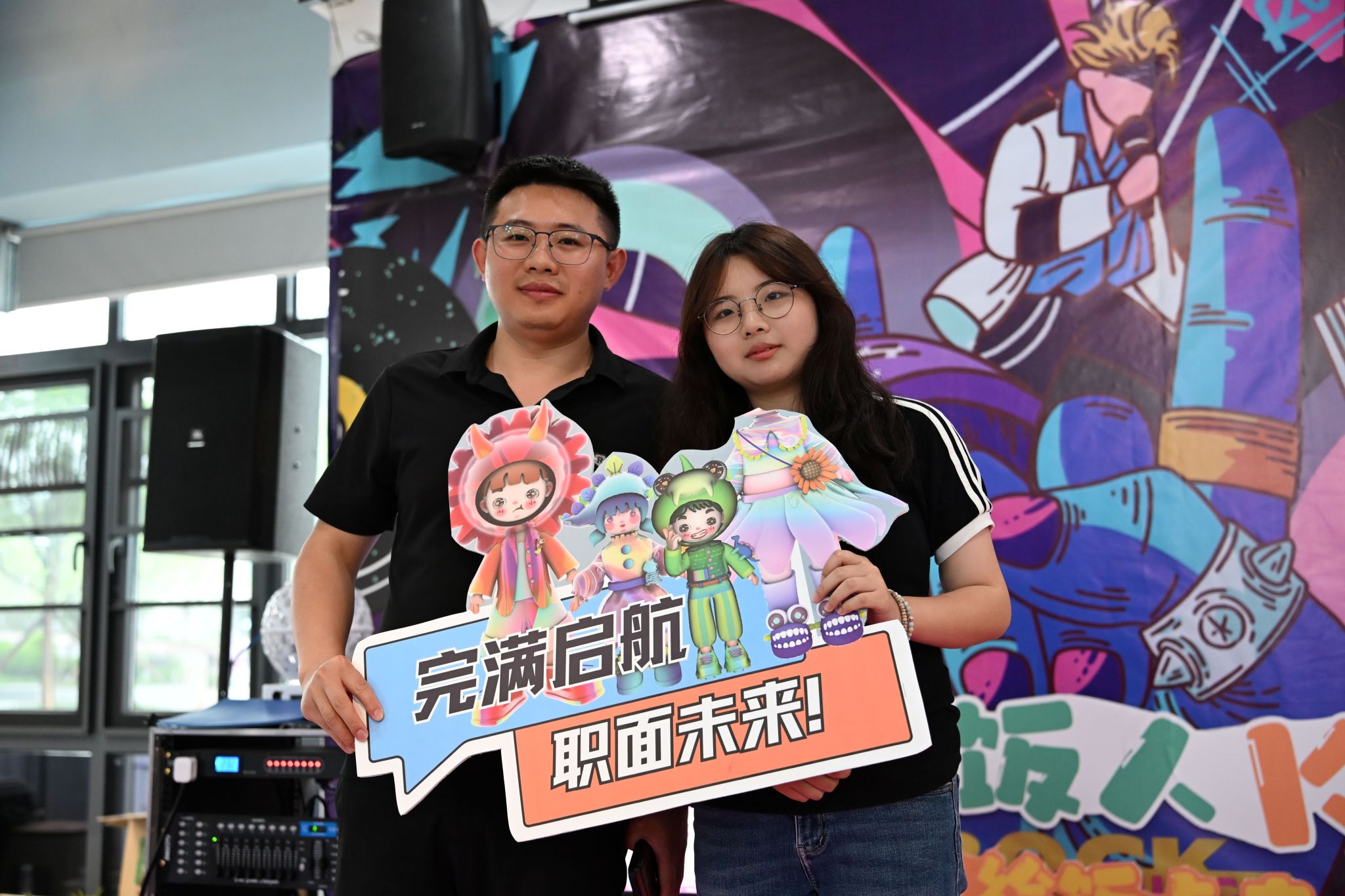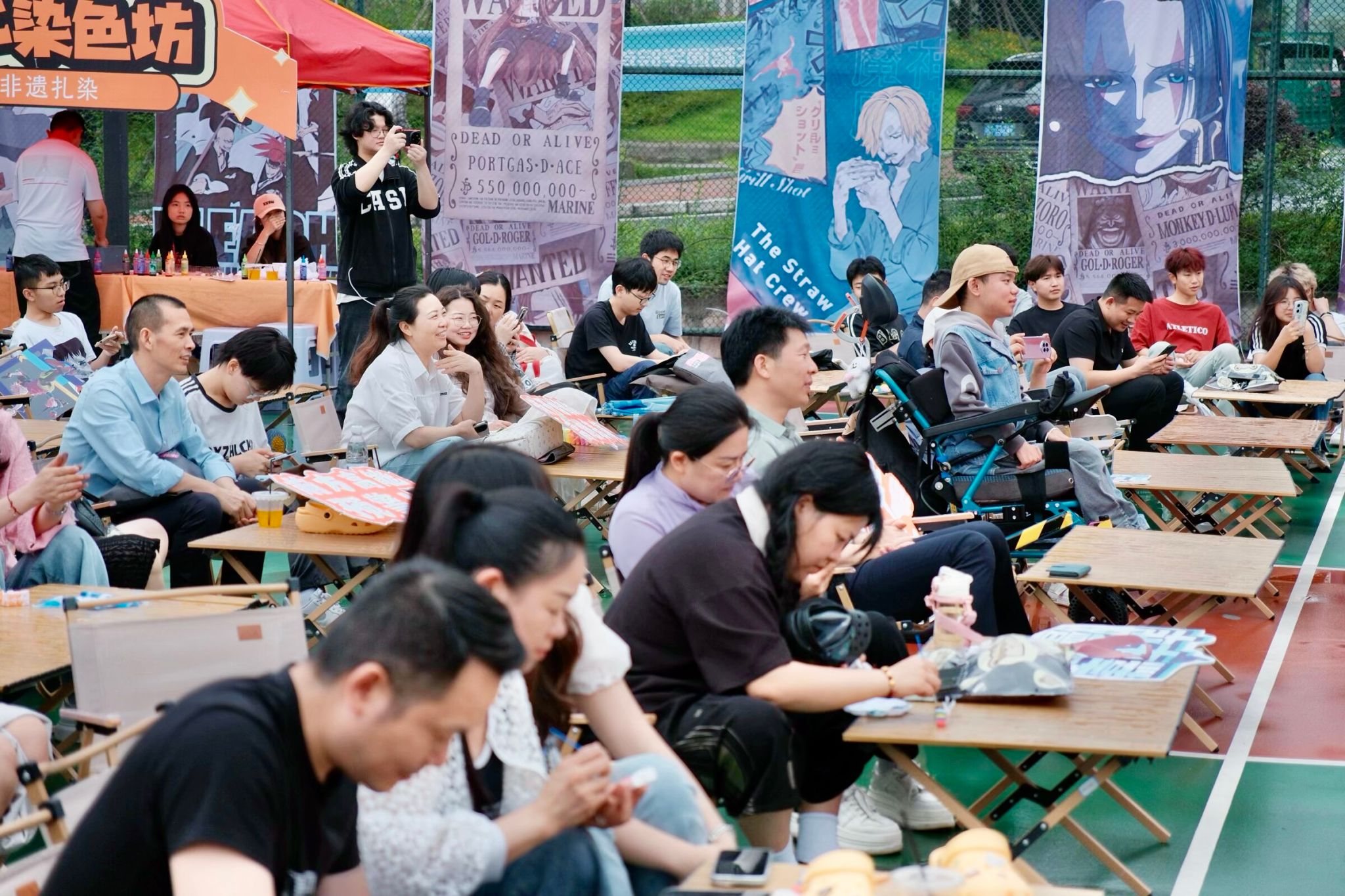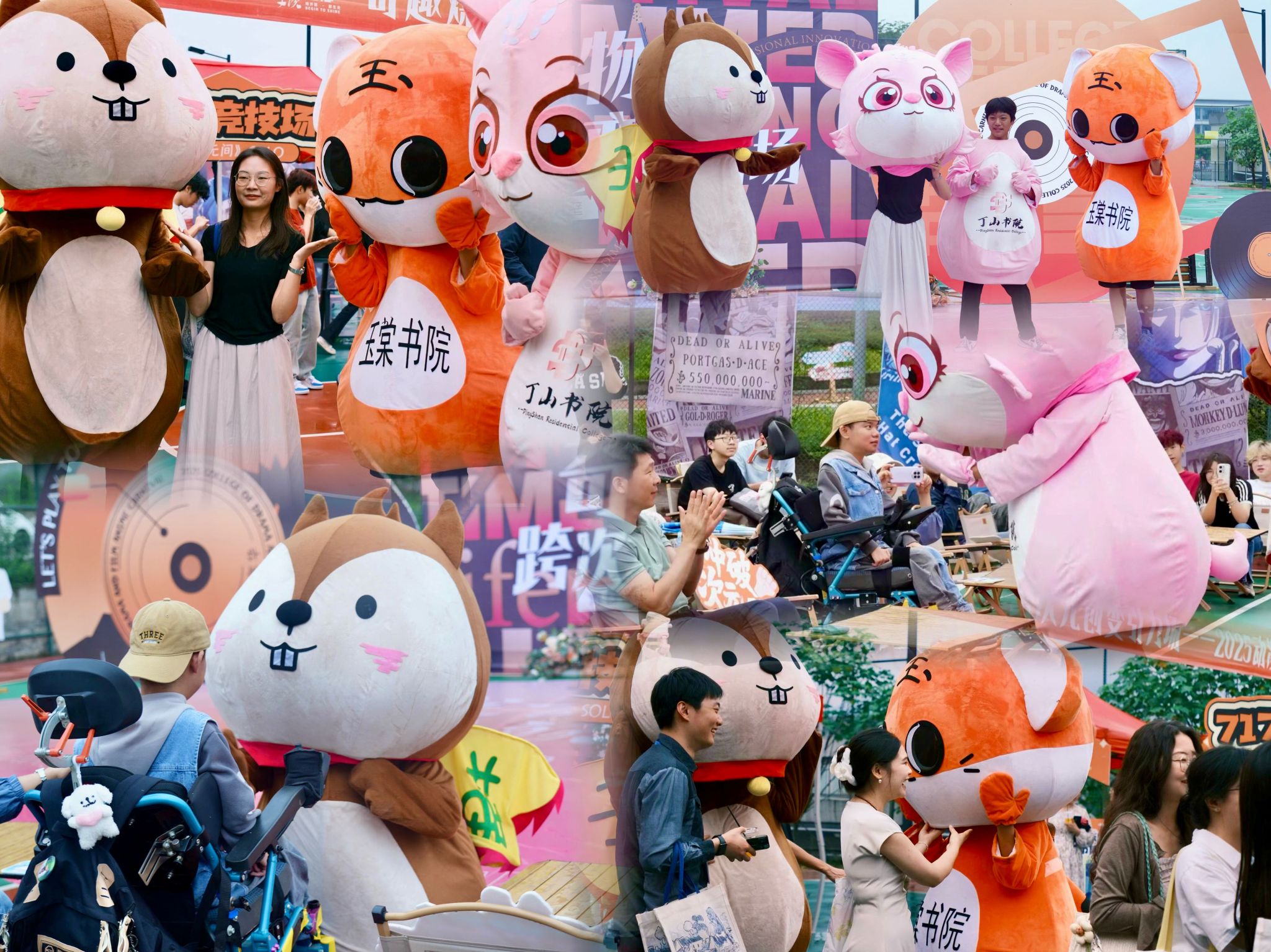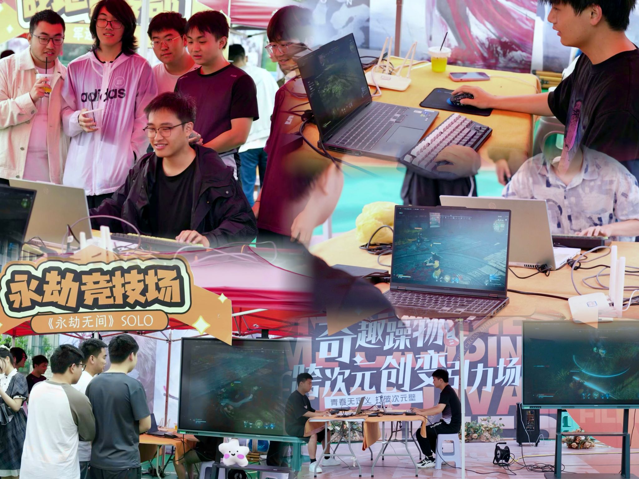 下午16:00,在行者楼旁的篮球场,一场由戏娃们精心设计的“动漫游园会·家长开放日引力场”主题活动火热进行中。COSPLAY舞蹈秀、动漫歌舞表演精彩纷呈,电竞游戏区、模拟射击体验站、石膏娃娃涂鸦、扎染艺术工坊活动丰富多彩。