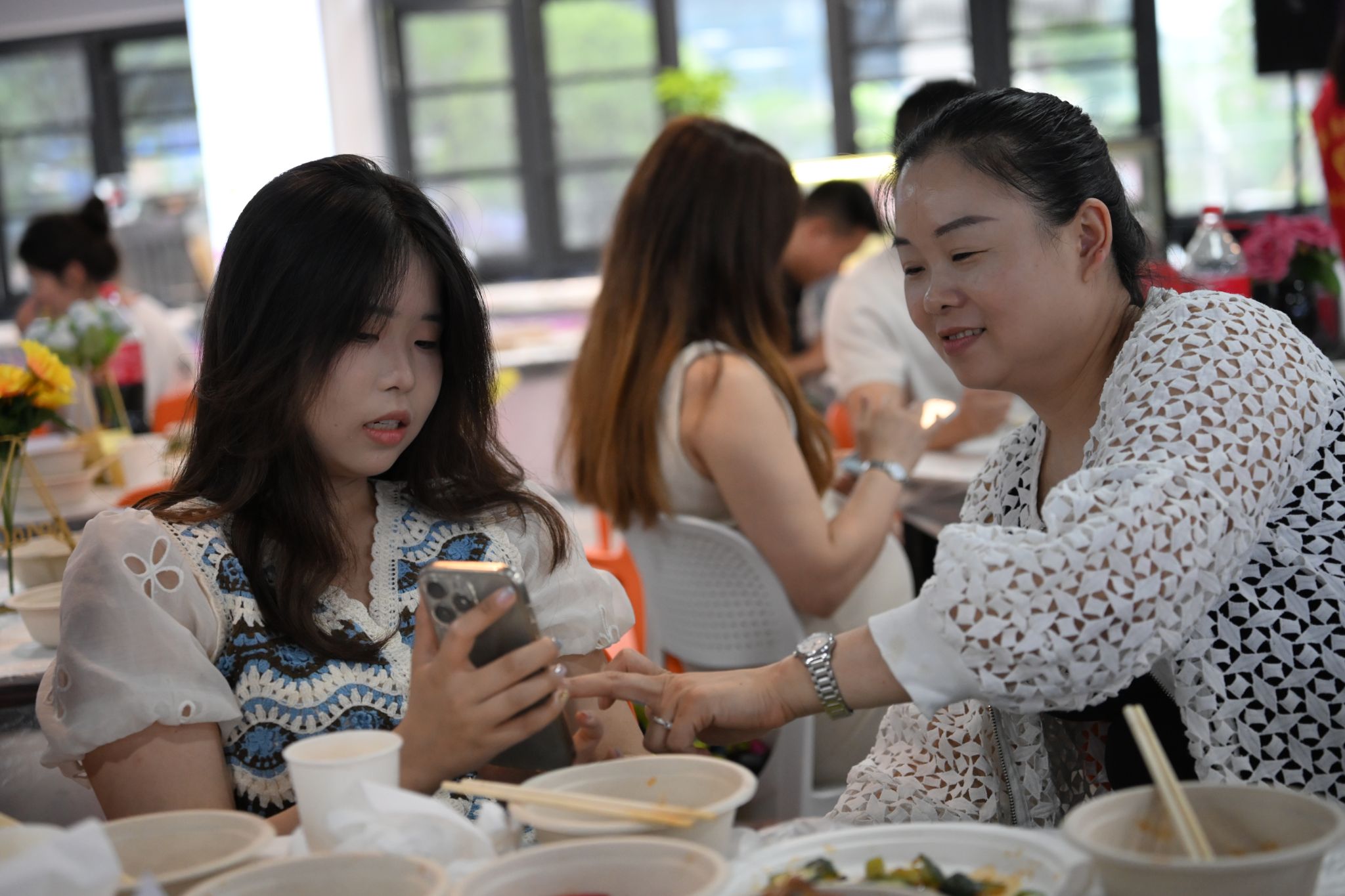 等待煮饺期间,戏娃们发起“干饭人KTV”表演,为父母唱起《时间都去哪儿了》《听妈妈的话》《等你下课》《在你的身边》等歌曲,在场家长看到了课堂之外戏娃自信闪耀的青春模样,纷纷举起手机记录孩子的发光时刻。