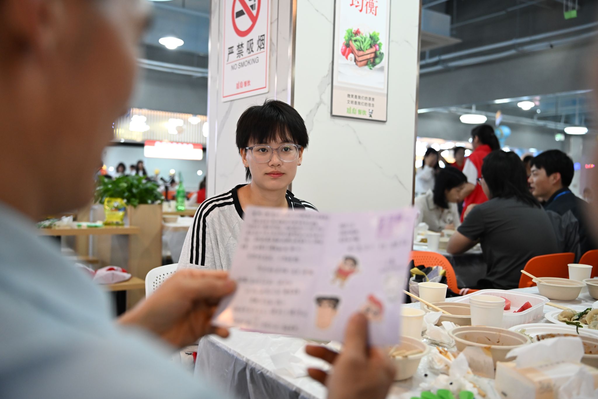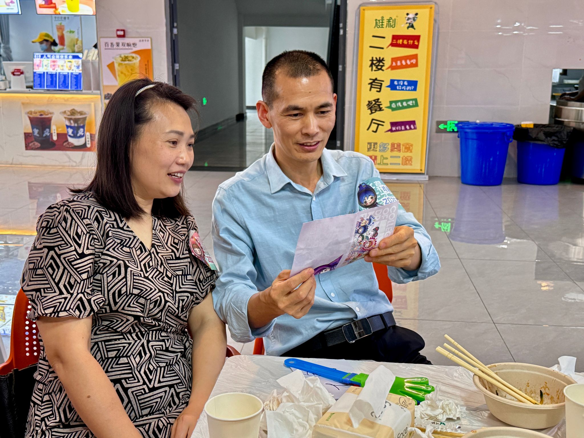 席间,戏娃们几次插兜,想要掏出兜里藏好的“真心话”送给家人,徘徊许久,终于双手奉上。家长们拿到孩子精心准备的信件,倍感欣慰和感动,这封信写下了戏娃们心底里最想说的话,有他们对学校的看法、对家人的思念以及自己在学校的成长和进步,家长们对此无比感动和骄傲。南州食堂的烟火气里,升腾起的是亲情与教育的温度。