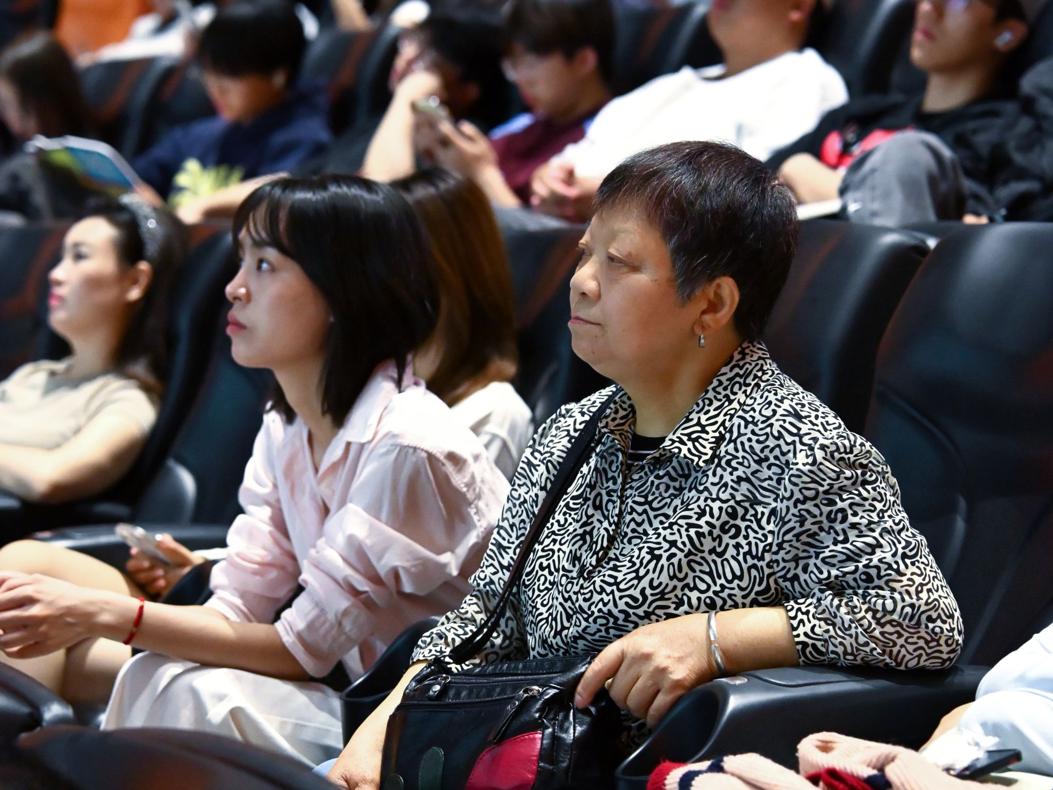 随后,戏娃带着家长走进西南片区最大的巨幕影厅,这里是学生日常上课的教室、活动开展的场地。巨幕厅内,正在进行戏剧影视学院2025年动画放映嘉年华,戏娃们邀请家人进场体验专业课程,巨幕的震撼、立体环绕音的亲临感,荧幕中精美的画面、奇幻的故事、巧妙的镜头运用让人应接不暇,将家长们带入了一个又一个充满创意的世界。
