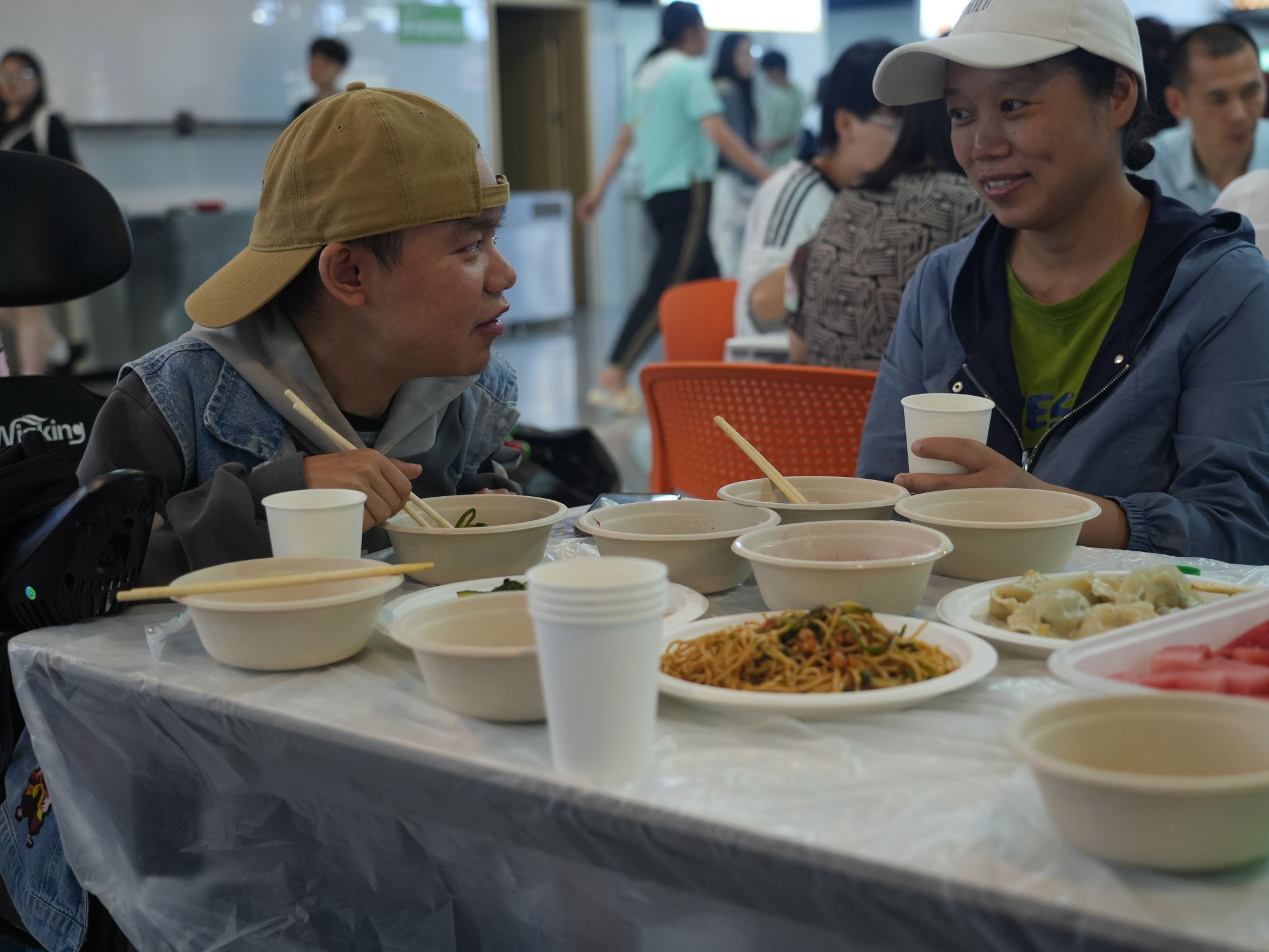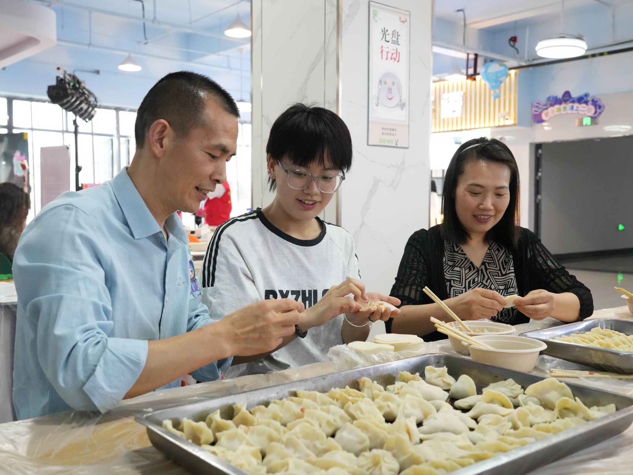 午间时分,学校南州食堂变身“亲子厨房”,家长与戏娃协作包制“成长馅”饺子,家长温柔地握着戏娃的手,手把手教学的样子,淳朴而又温馨。