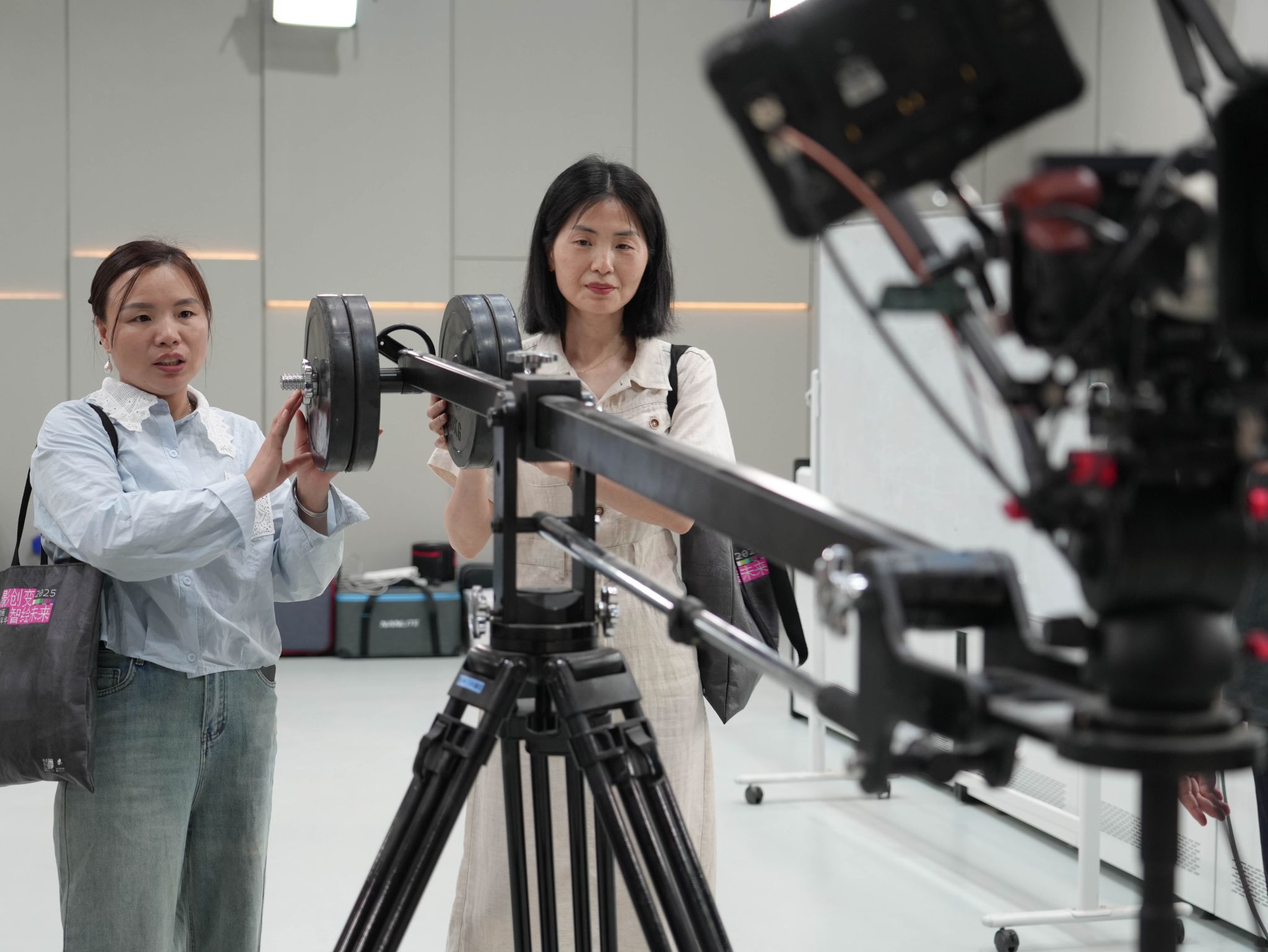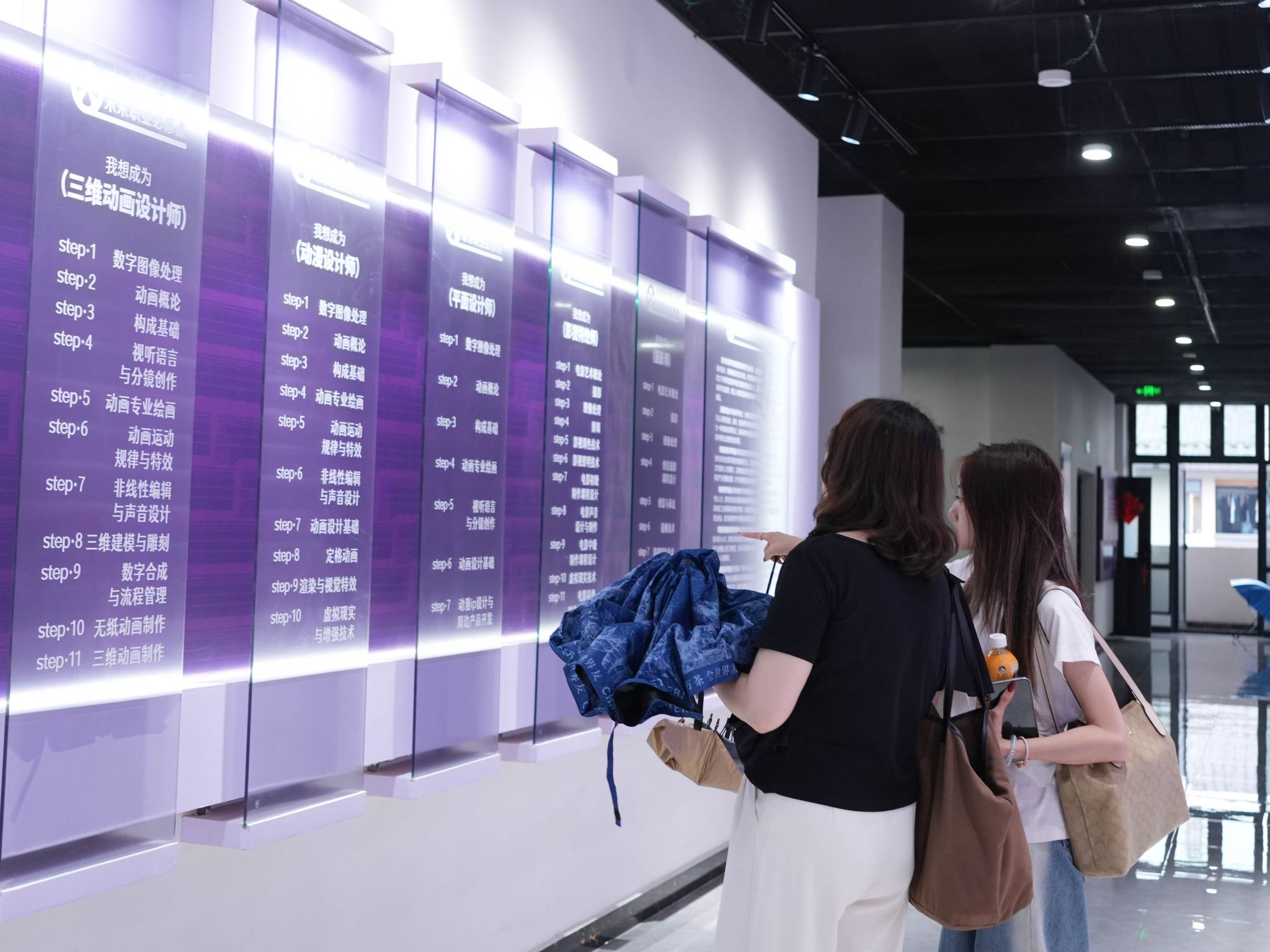 午后,学院邀请家长们走进学院实验室,参与光影游院会,从影视后期机房、绿幕拍摄室,到VP虚拟制片影棚和文化墙上精美的专业作品,家长们沉浸式体验到了戏影的浓厚艺术氛围,感受孩子们专业作品的魅力,纷纷在作品前合影留念。不少家长表示,戏影的专业教学有很好的环境和先进的设备加持,孩子的专业一定能学好!