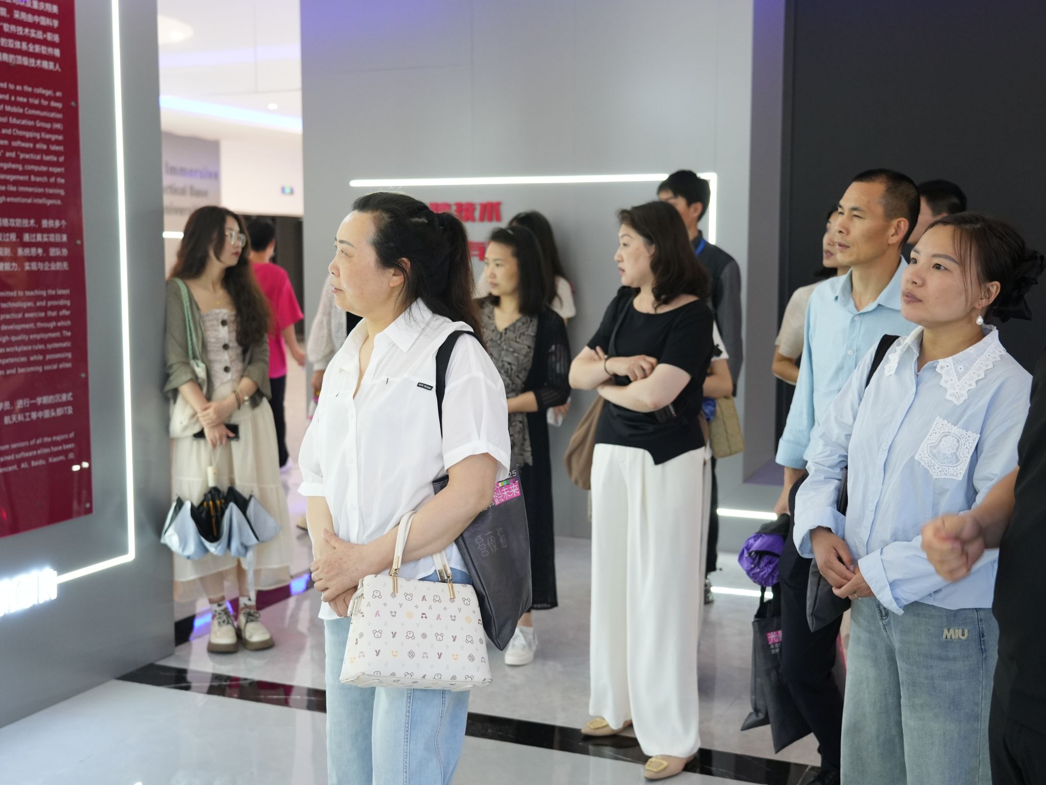 随即,辅导员带着家长们移步来到学校高质量就业孵化基地双体软件精英产业学院参观了解,家长在了解到双体学院的由来并听闻学院毕业生的优质就业后,纷纷感叹移通学院办学水平和教育投入。
