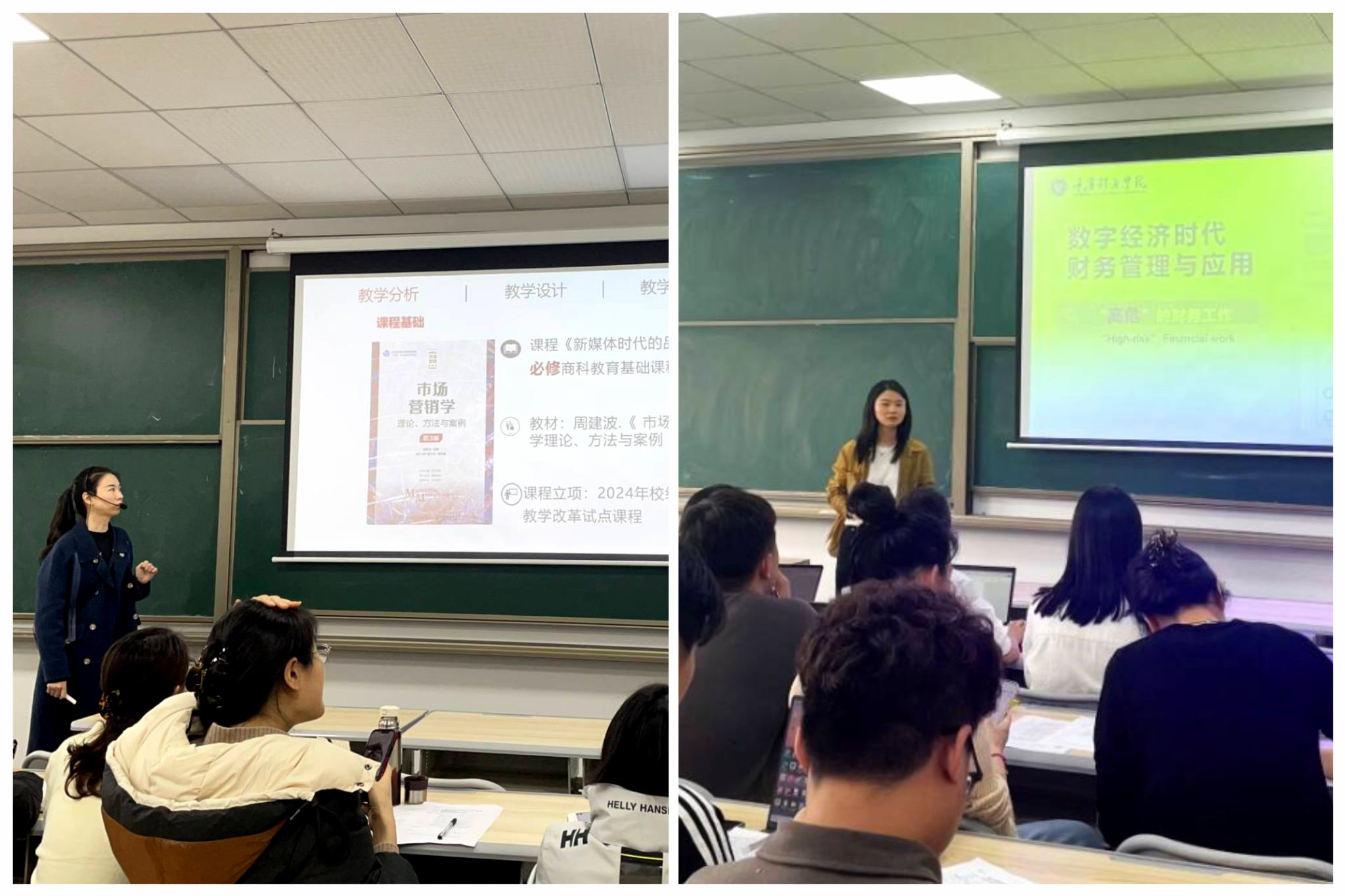 其次,老师们对思政与前沿融合赋能课堂进行了探索。谭小珂老师在《数字经济时代财务管理》课程中,以财务法律演变为主线,通过政府报告、热播剧等案例,剖析“他律”局限性,引导学生思考职业道德内核,探索思政与专业知识的有机融合路径。陶春霖老师以“小米SU7 Ultra品牌策略”为案例,解析科技品牌跨界逻辑:参数对标保时捷锚定目标用户、硬核技术传递价值、创始人IP强化情感共鸣,并引导学生用工程思维探讨“科技品牌如何跨越品类鸿沟”,优化非商科学生理解路径。
