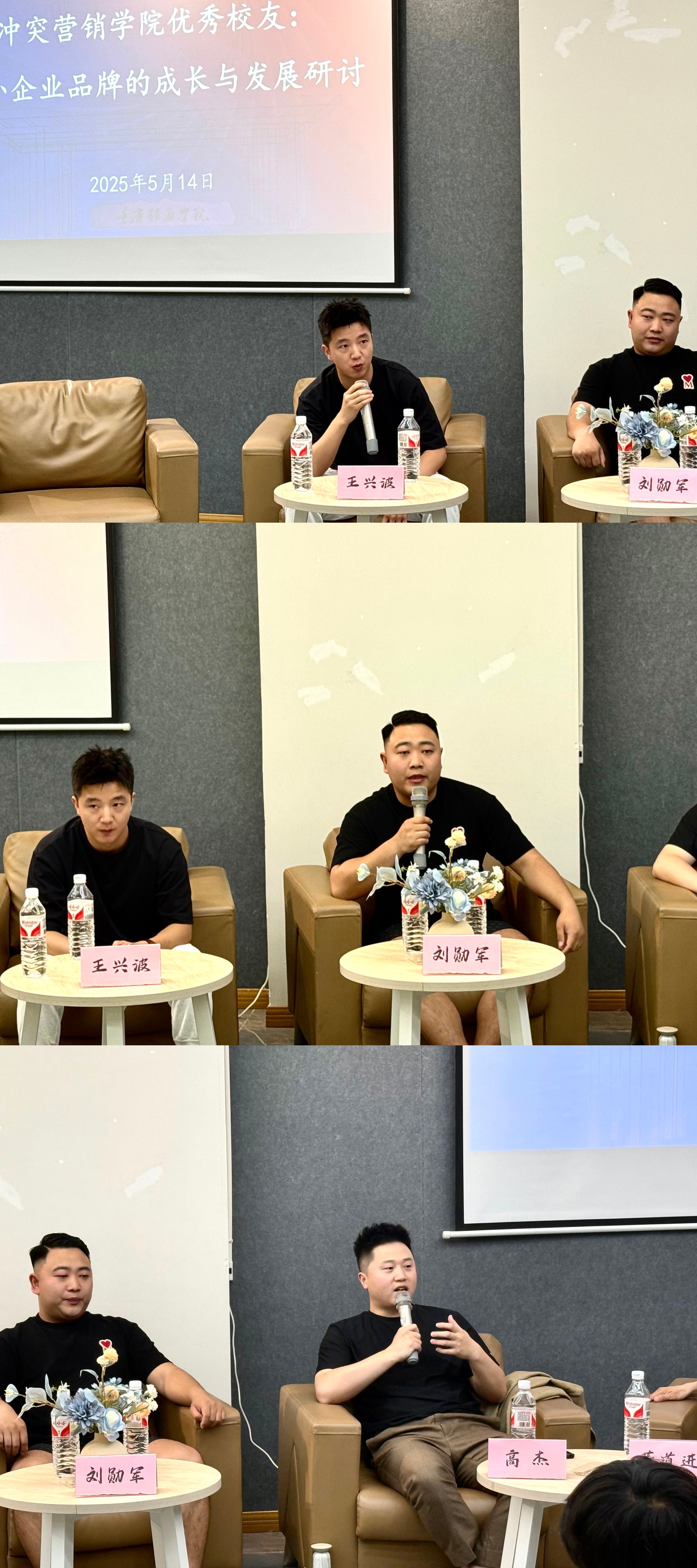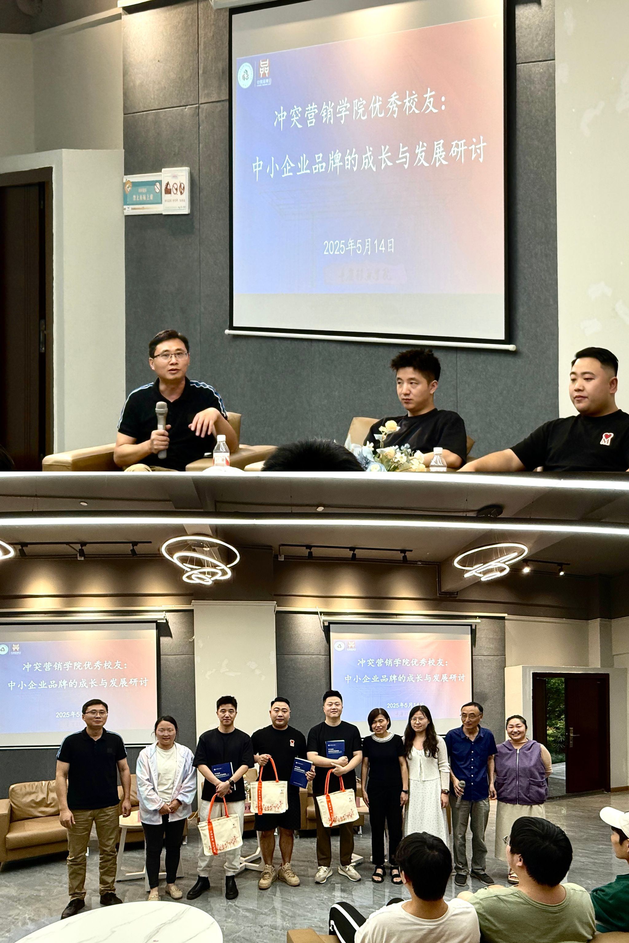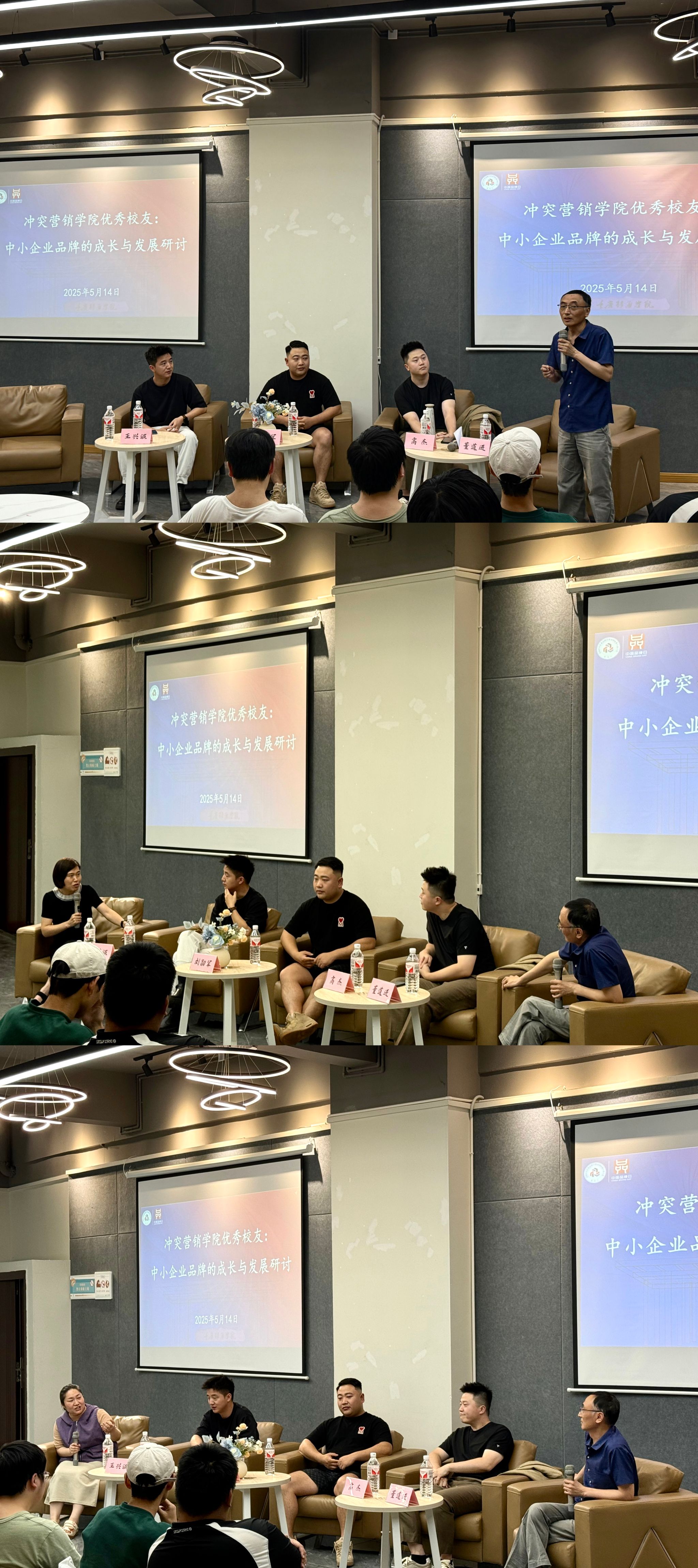 冲突营销学院主管董道进在点评中强调“立志者的破局之道”,以三位校友为例解析目标导向的重要性。市场营销教研室两位导师披露校友求学轶事,引发全场会心笑声。