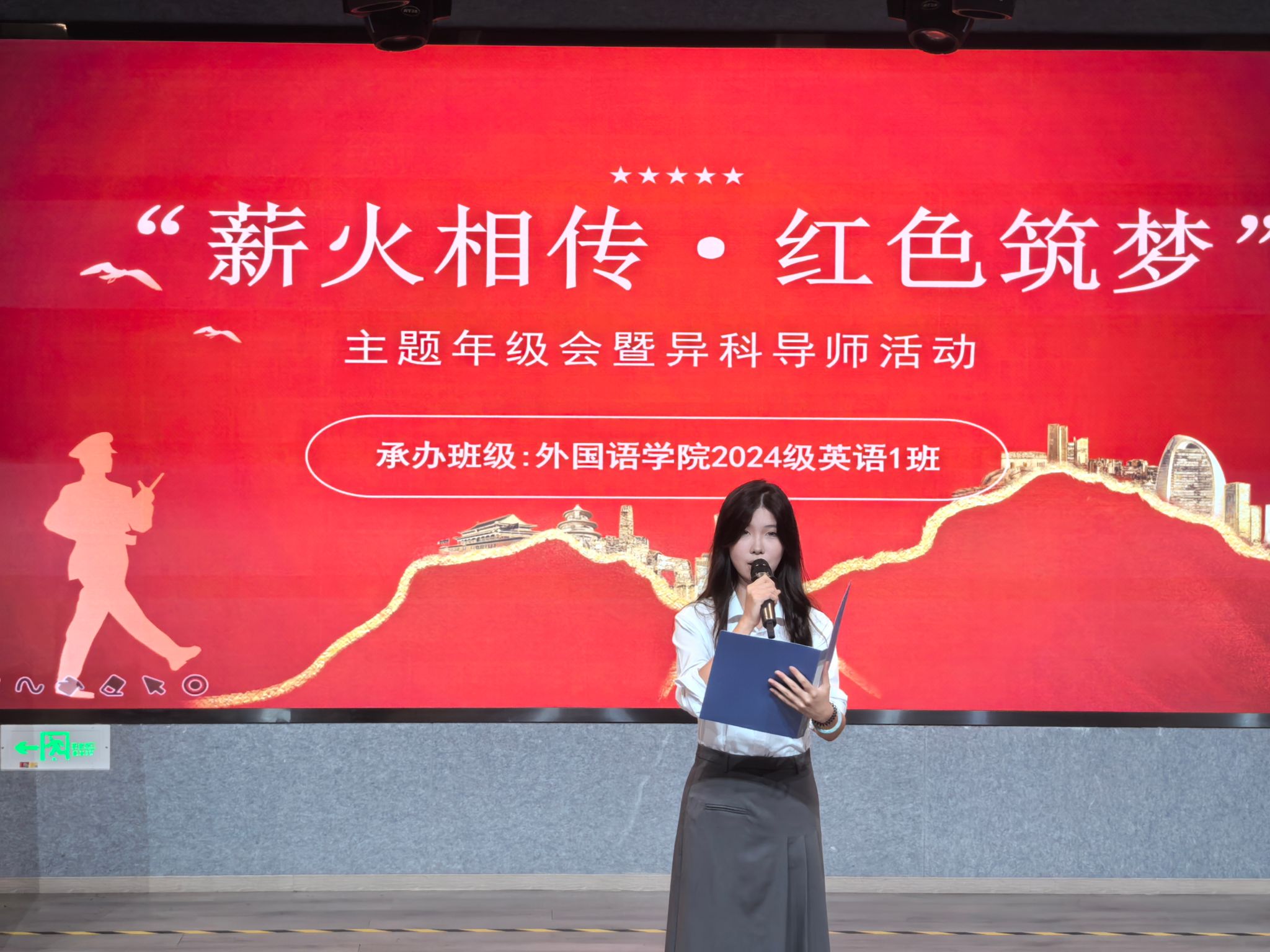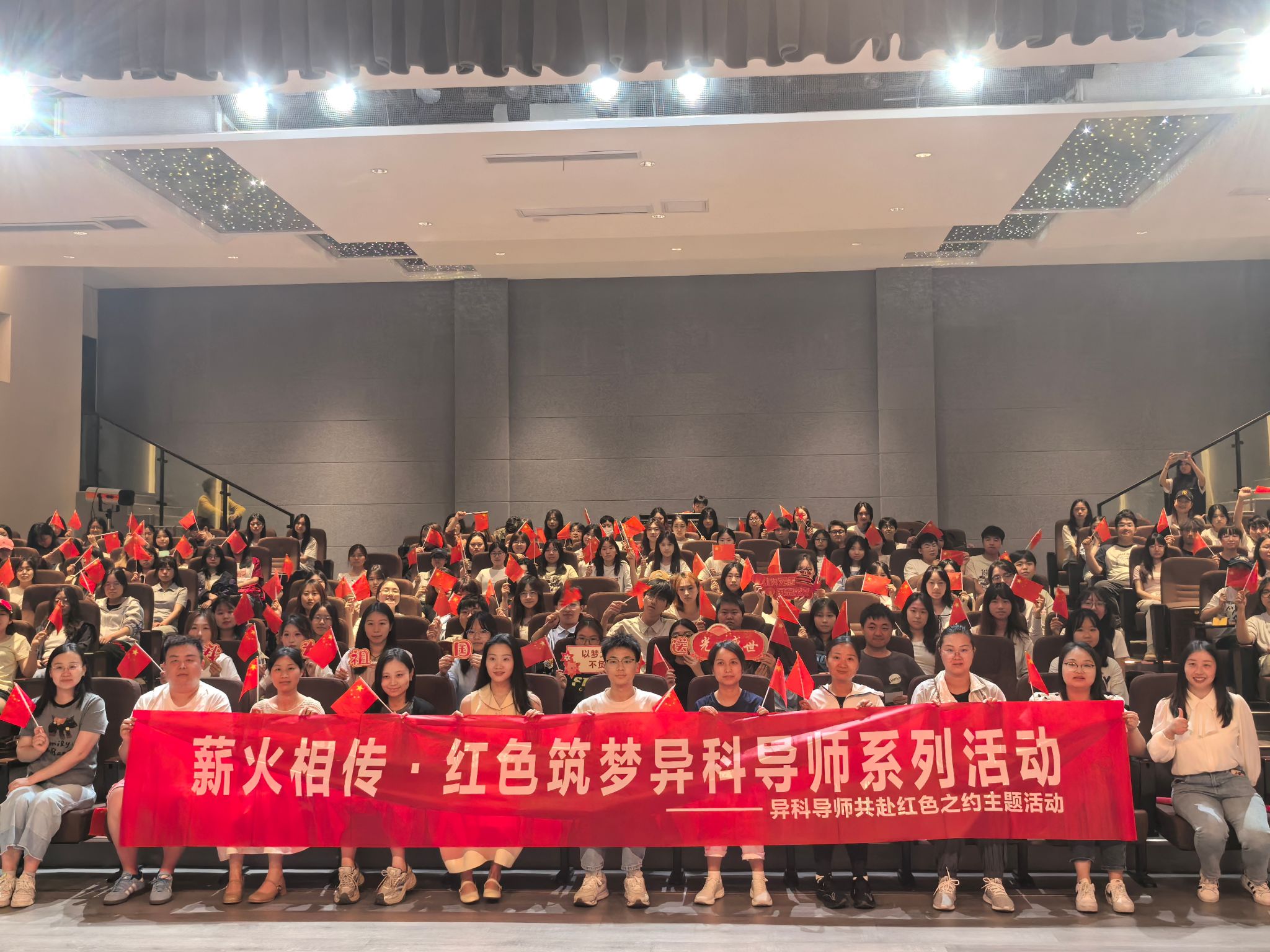 5月16日,重庆移通学院六度空间星河音乐厅被一片热烈而庄重的氛围所笼罩,外国语学院“薪火相传·红色筑梦——与异科导师共赴红色之约”主题活动在这里盛大举行。此次活动由外国语学院主办、外国语学院同学及对应异科导师齐聚一堂,以红色精神为灯塔,共同开启思想成长的新征程。