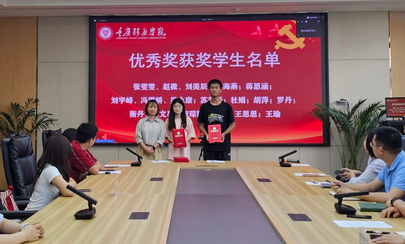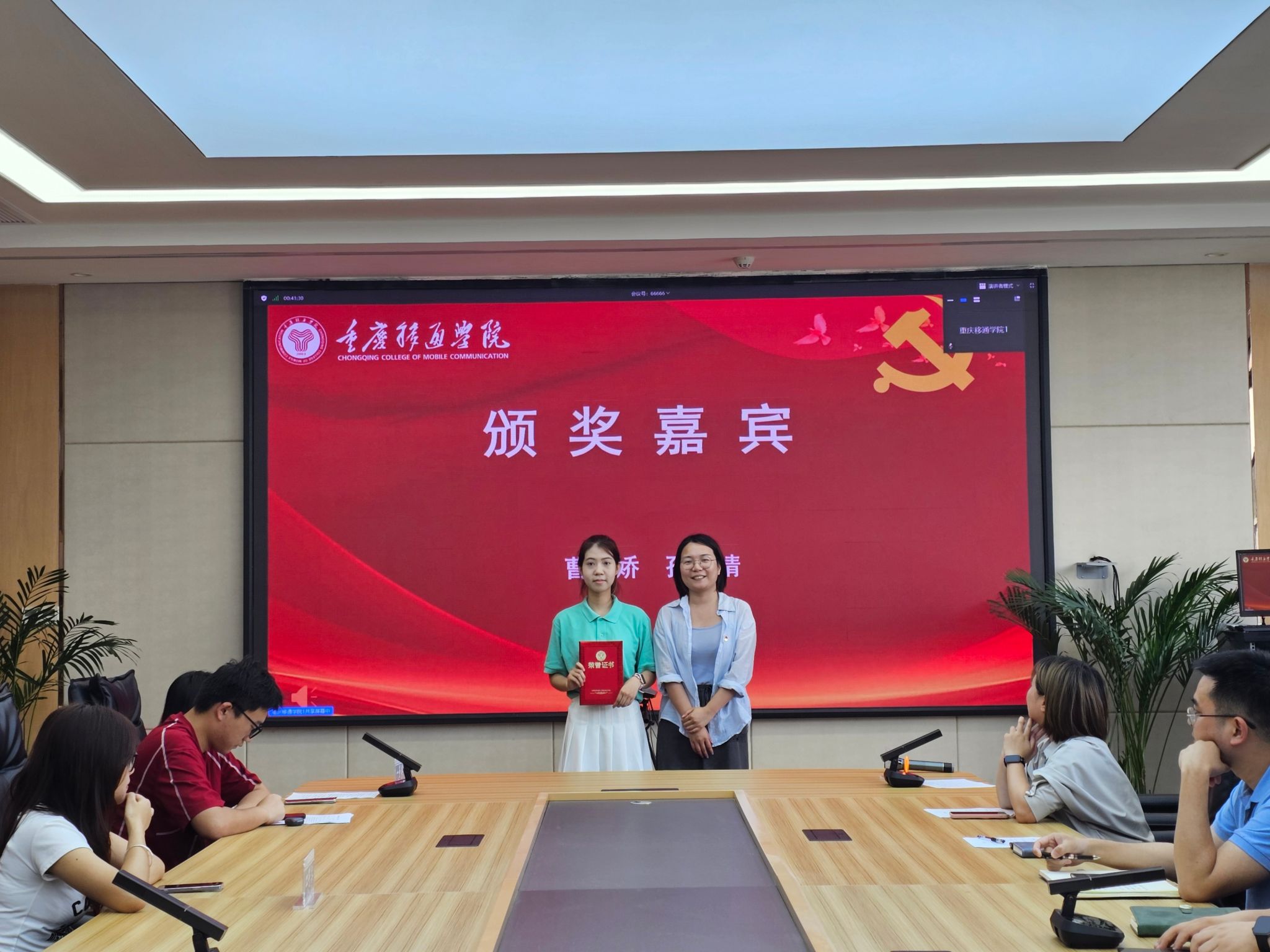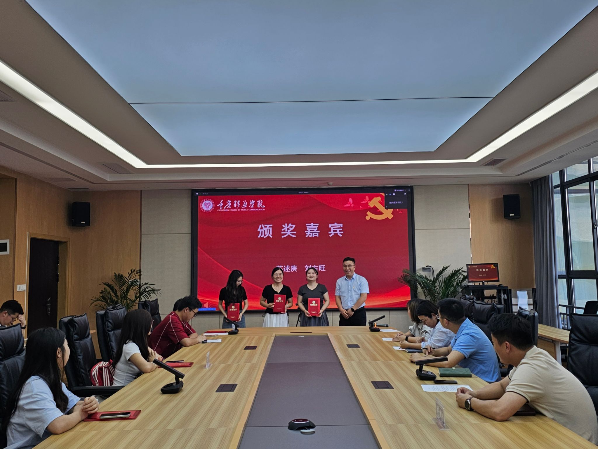 合川校区淬炼商学院党总支统战委员、副院长陈晓曼,綦江校区信息安全学院学生党支部书记尹金维为郭海燕等十四名优秀奖获奖者颁奖。