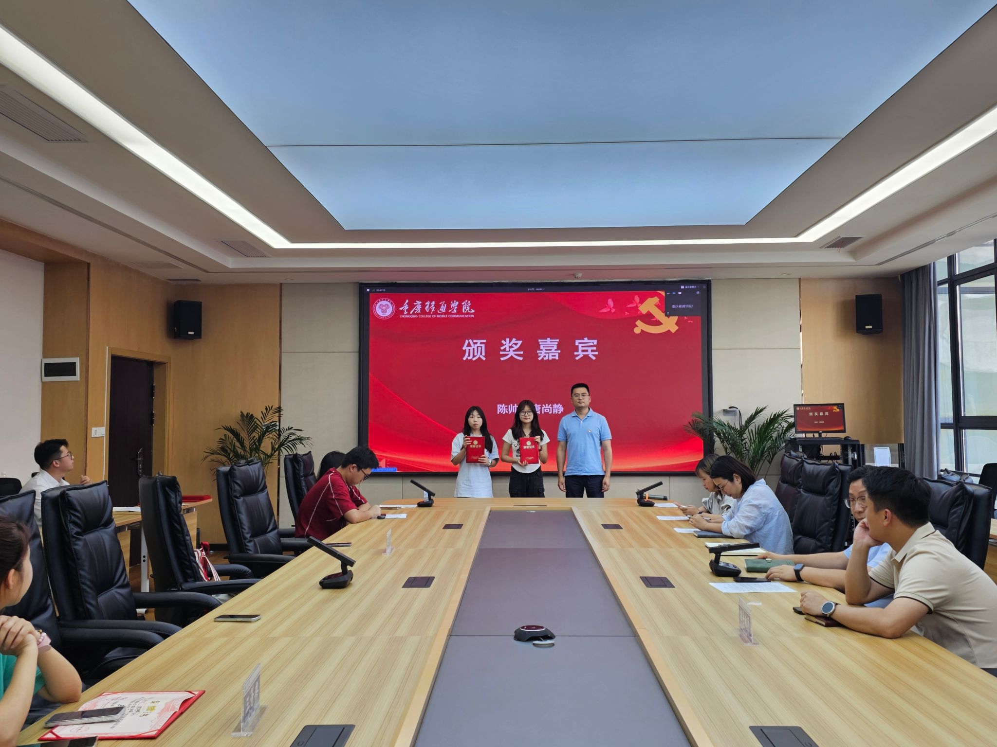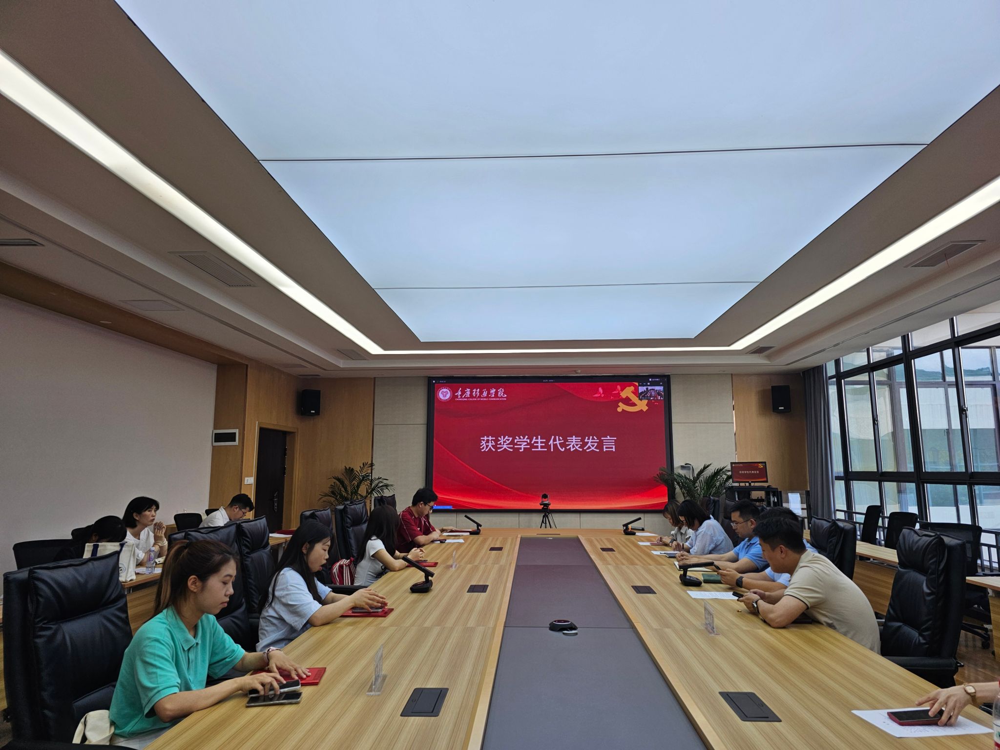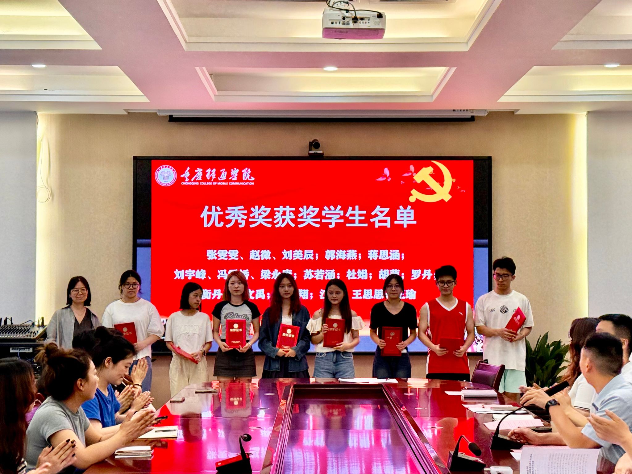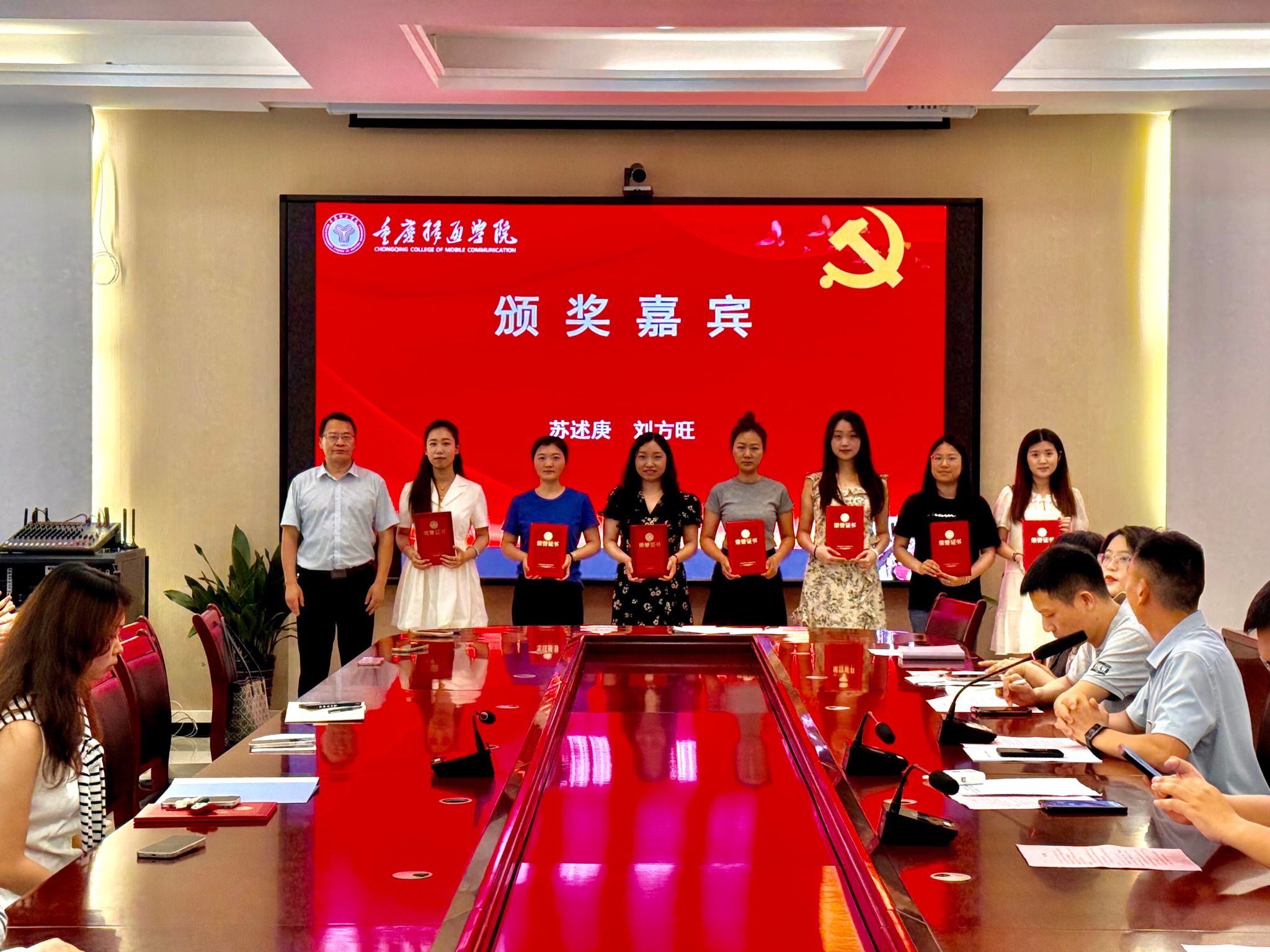 合川校区淬炼商学院党总支统战委员、副院长陈晓曼,綦江校区信息安全学院学生党支部书记尹金维为郭海燕等十四名优秀奖获奖者颁奖。