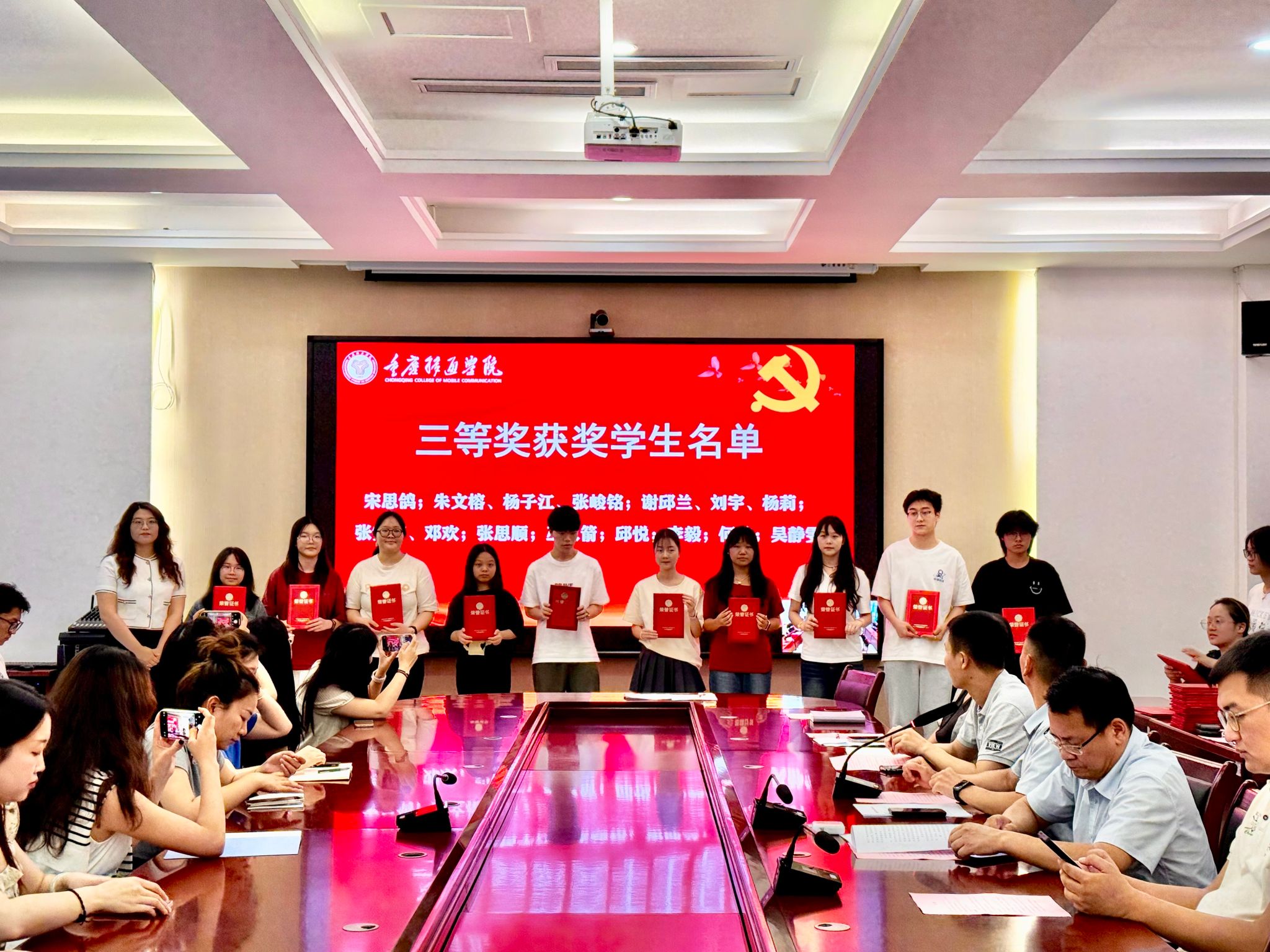 学校少数民族联谊会会长、合川校区书院部副部长孙佳婧,綦江校区书院部部长曹玉姣为宋思鸽等十名三等奖获奖者颁奖。