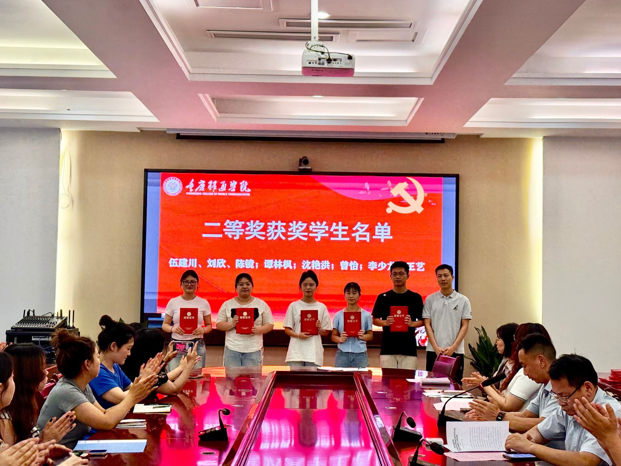 合川校区学生处处长陈帅、綦江校区学生处副处长唐尚静为谭林枫等六名二等奖获奖者颁奖。