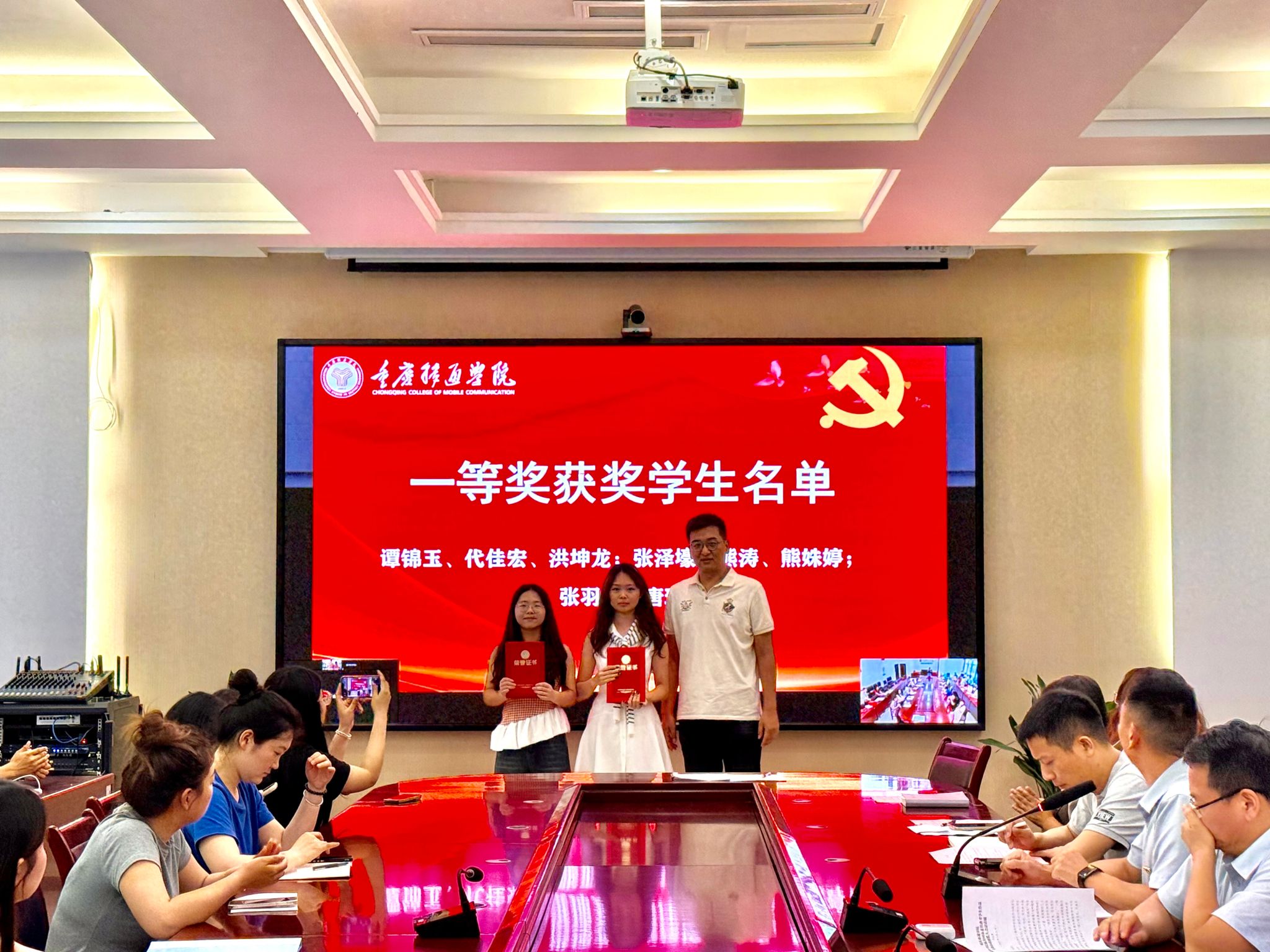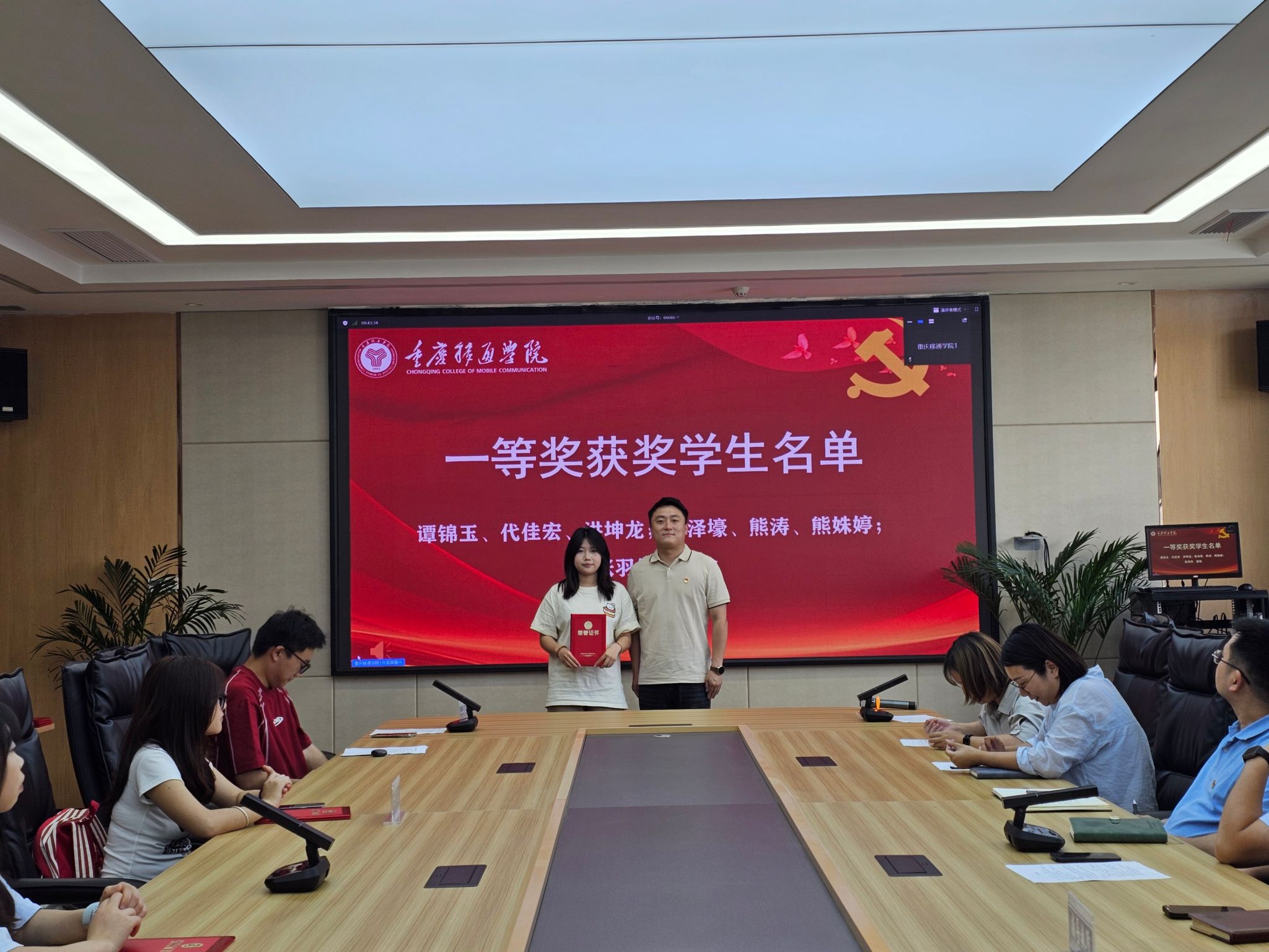 合川校区团委书记穆春江、綦江校区团委副书记蔡星宇为谭锦玉等四名一等奖获奖者颁奖。