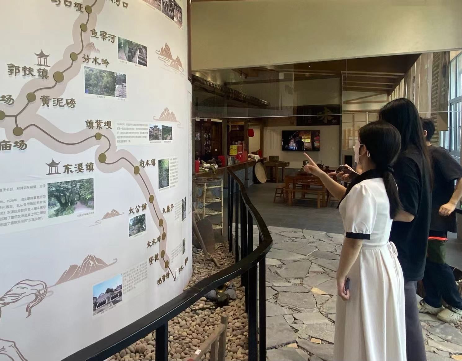 紧接着,彭浩老师邀请参会人员参观綦江非物质文化遗产馆。这座全国首座以地级行政区命名的高校非遗馆,以六大展厅展现綦江文化底蕴。其中,“綦味乡愁”展厅中,42项美食非遗与实物展品,展现渝黔饮食文化;“盐马古道”展厅串联川盐历史与长征遗迹,凸显双重文化价值;“匠心綦技”展厅里,竹编、巴古陶等技艺在传承与创新中重生;“艺术奇葩”展厅陈列綦江农民版画和剪纸等作品;“风情苗家”展厅以苗绣展品诉说民族文化传承;“古韵乡音”展厅用吹打乐器等,奏响民间艺术长歌。