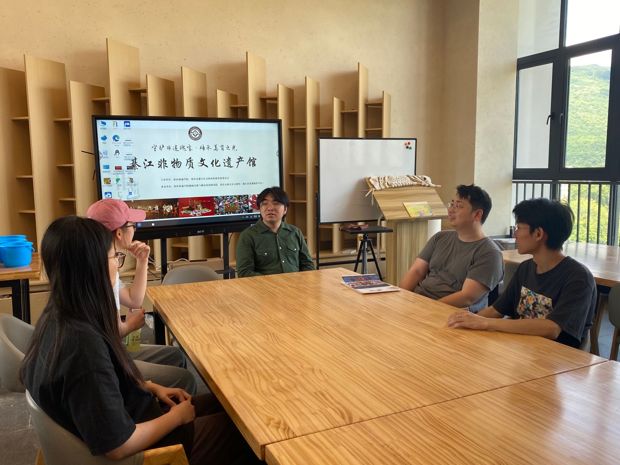为积极响应国家关于推动文化遗产创造性转化与创新性发展的号召,推动数字媒体技术与非遗文化保护深度融合,构建非遗传承与专业教育协同发展的长效机制。2025年5月21日,数字媒体产业学院与綦江非物质文化遗产馆,于綦江非物质文化遗产馆成功举行了“短视频+非遗”为主题的座谈会。本次会议由綦江非物质文化遗产馆彭浩老师主持,数字媒体产业学院主管刘嘉楷老师等共4位教师出席。