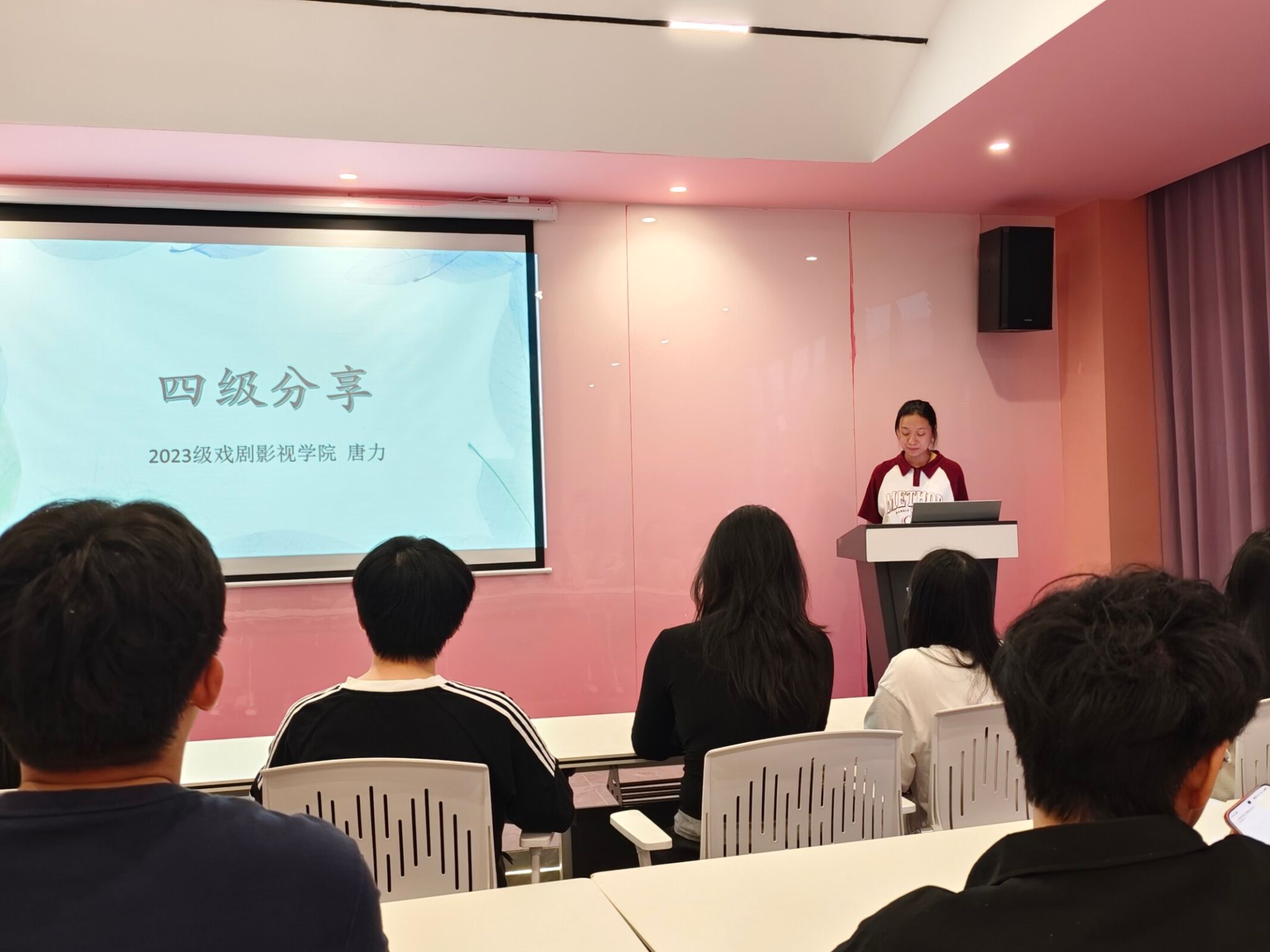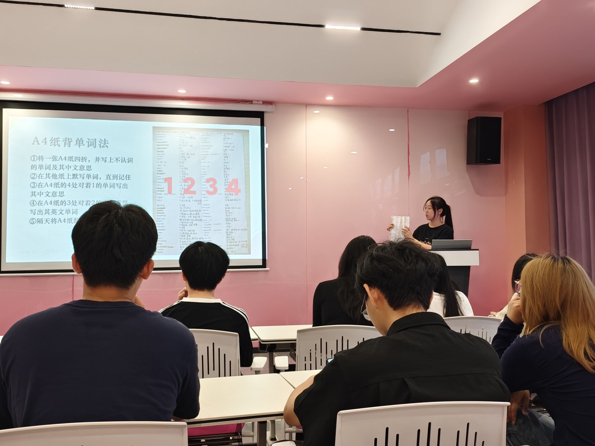 罗容红同学分享了自己的备战四级经验。首先,利用积累的高频词库,结合四级真题梳理核心词汇;其次,针对听力、阅读、写作板块制定专项训练计划,比如每天精听1篇真题对话,分析错题逻辑;最后,考前两周进行全真模拟,严格把控答题时间,适应考试节奏。张文懿同学则通过对比四六级差异,指出:“四级侧重基础词汇运用,而六级更考验长难句理解和学术词汇储备。以阅读理解为例,四级答案多能在原文直接找到,六级则需结合上下文推理。建议大家整理近5年真题,总结高频考点和命题陷阱。”她的分析让同学们的备考方向更加清晰。